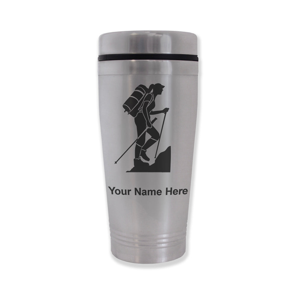 Commuter Travel Mug, Hiker Woman, Personalized Engraving Included