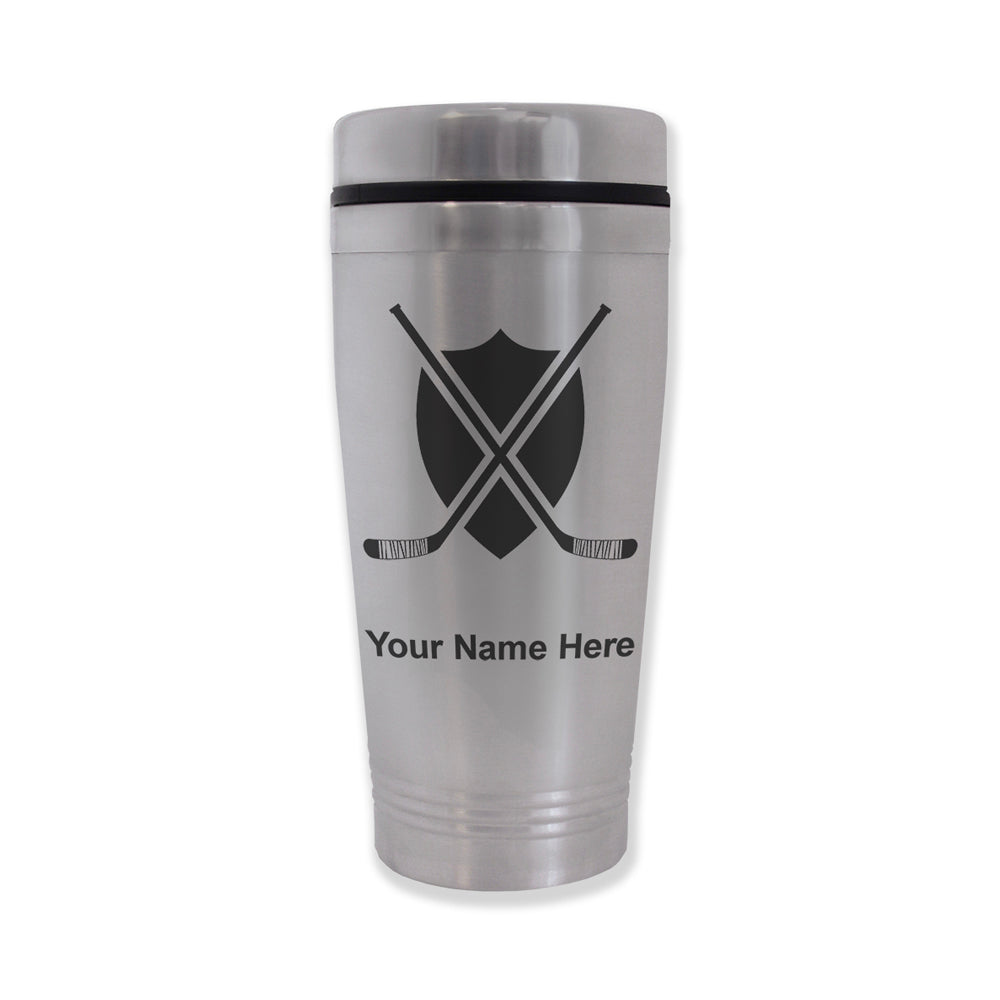 Commuter Travel Mug, Hockey Sticks, Personalized Engraving Included