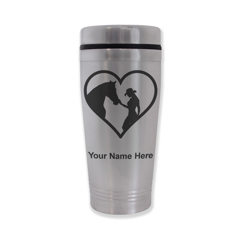 Commuter Travel Mug, Horse Cowgirl Heart, Personalized Engraving Included