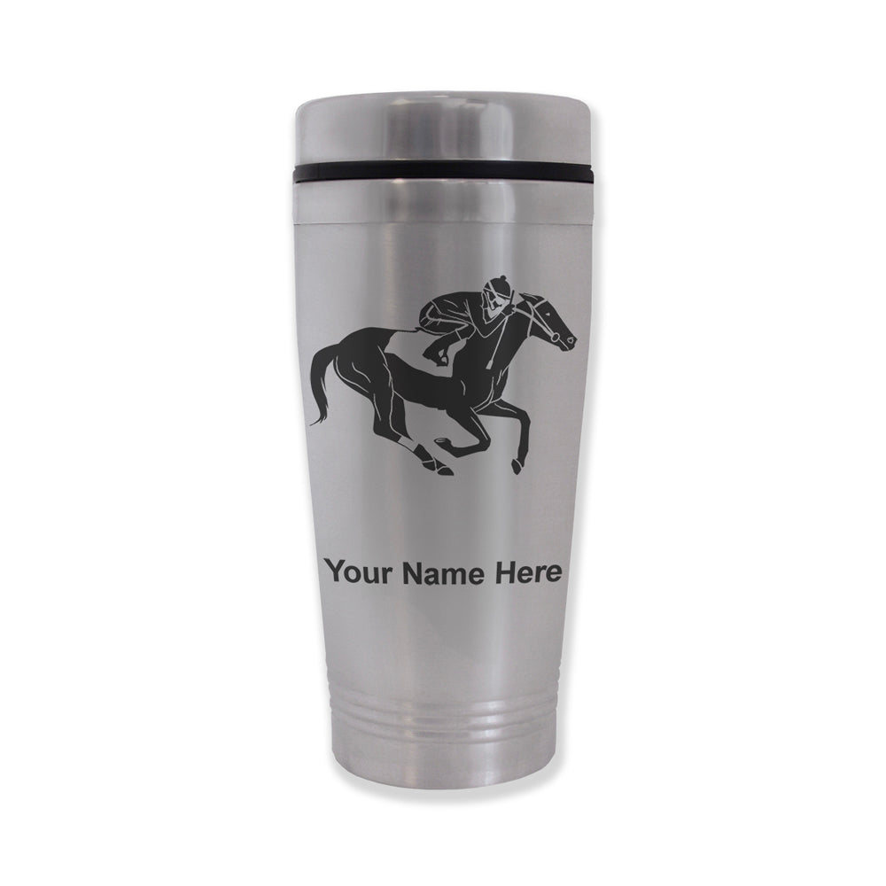Commuter Travel Mug, Horse Racing, Personalized Engraving Included