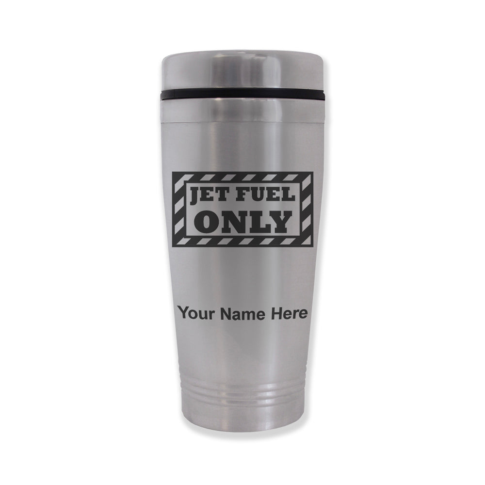 Commuter Travel Mug, Jet Fuel Only, Personalized Engraving Included
