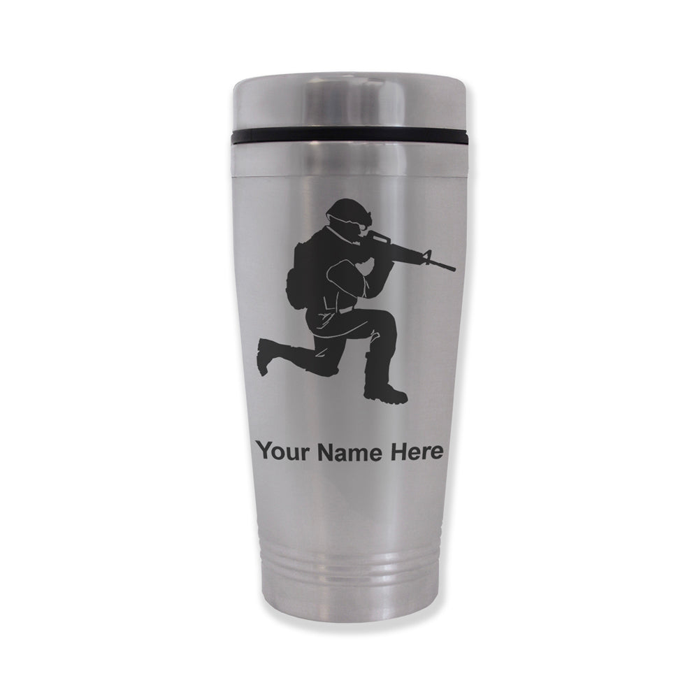 Commuter Travel Mug, Military Soldier, Personalized Engraving Included