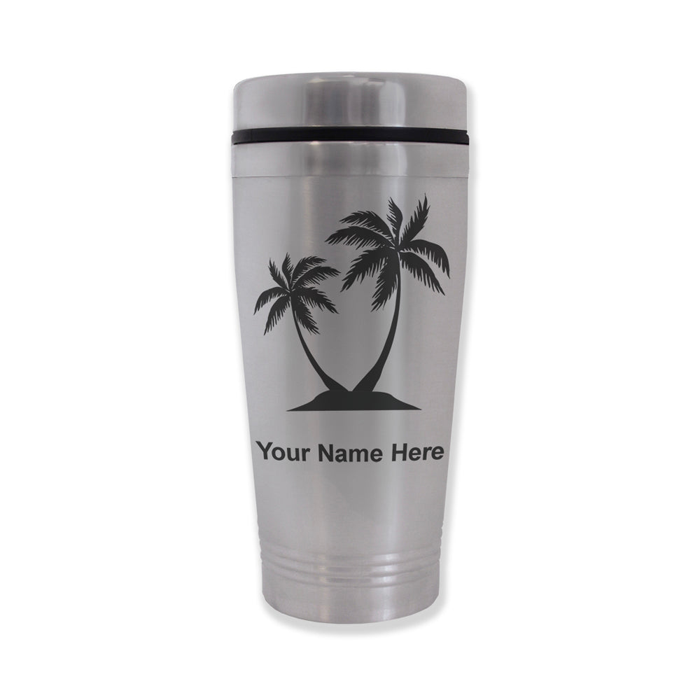 Commuter Travel Mug, Palm Trees, Personalized Engraving Included