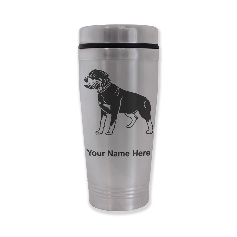 Commuter Travel Mug, Rottweiler Dog, Personalized Engraving Included