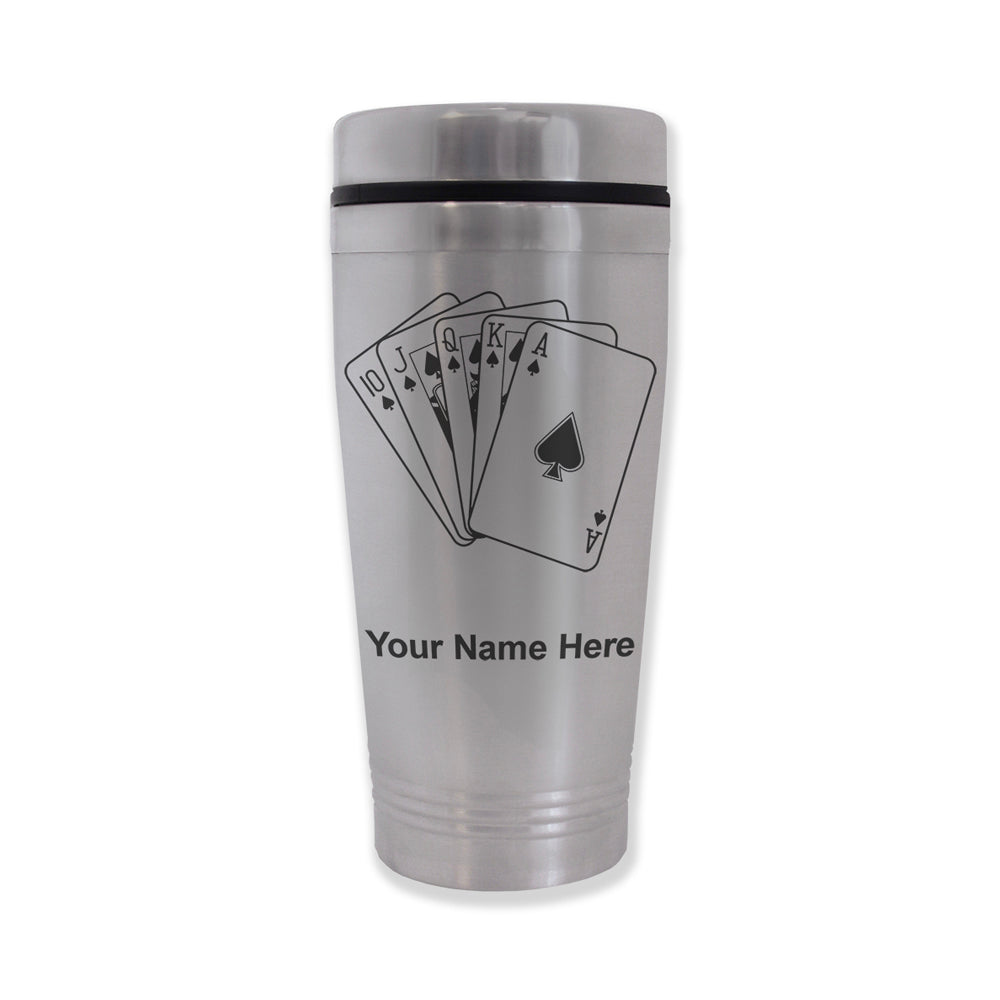 Commuter Travel Mug, Royal Flush Poker Cards, Personalized Engraving Included