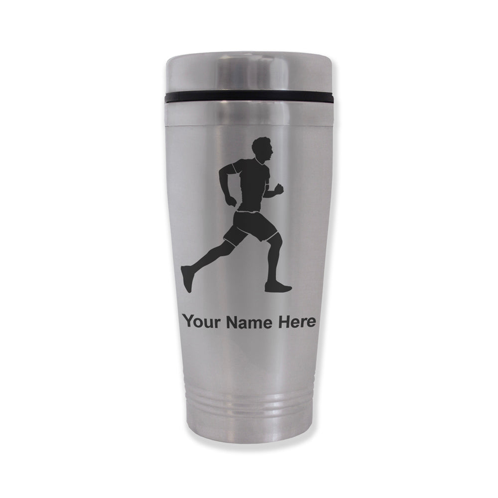 Commuter Travel Mug, Running Man, Personalized Engraving Included