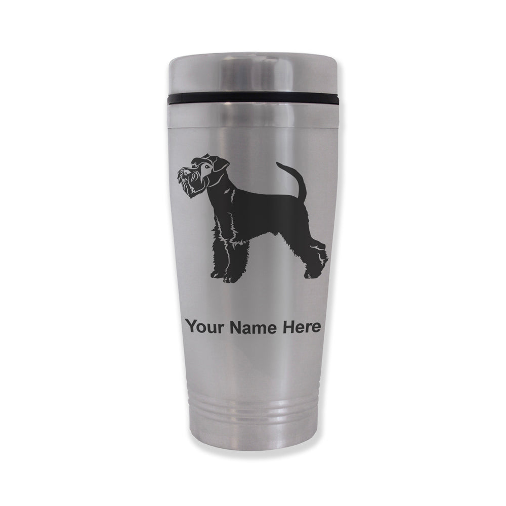 Commuter Travel Mug, Schnauzer Dog, Personalized Engraving Included