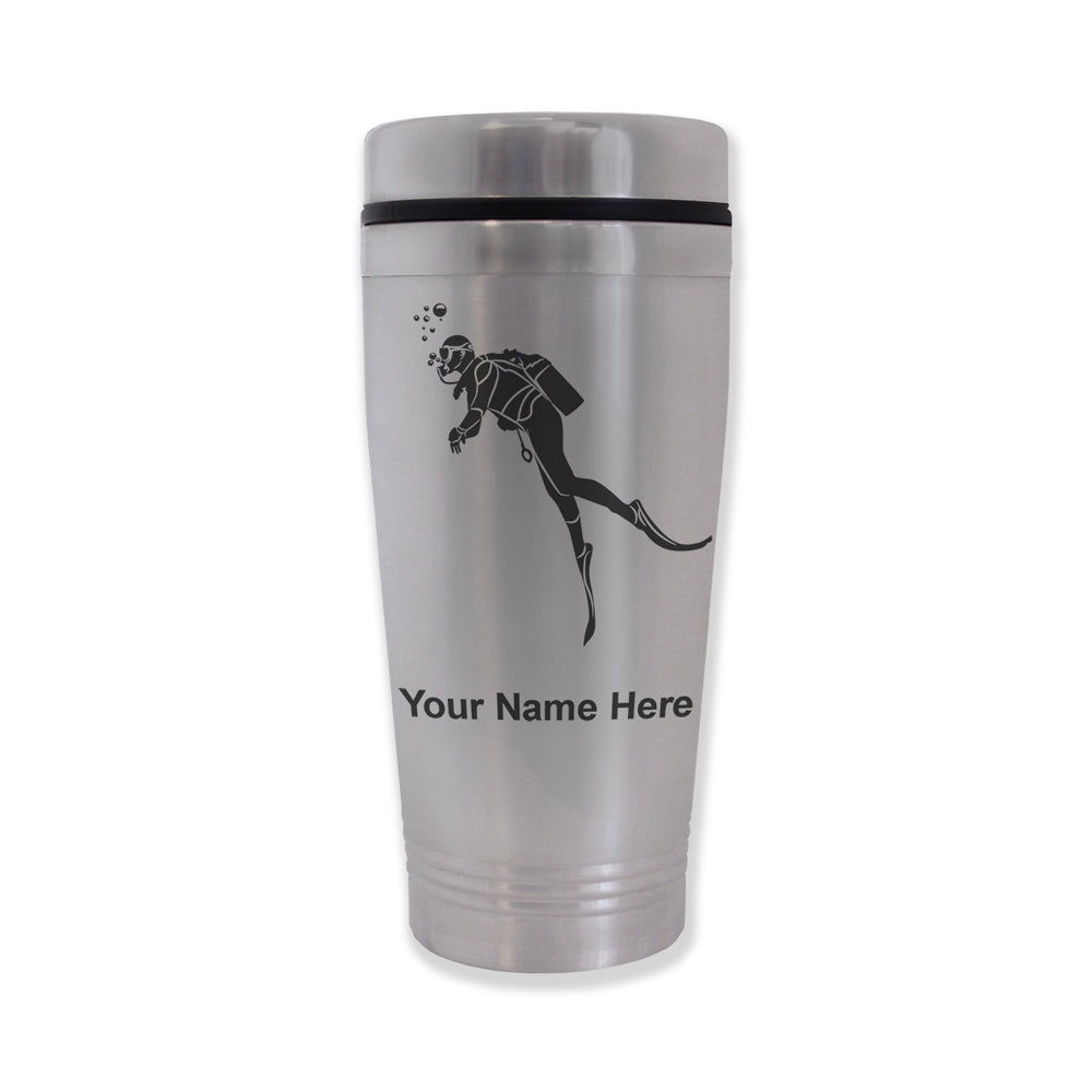 Commuter Travel Mug, Scuba Diver, Personalized Engraving Included