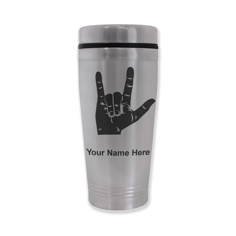 Commuter Travel Mug, Sign Language I Love You, Personalized Engraving Included