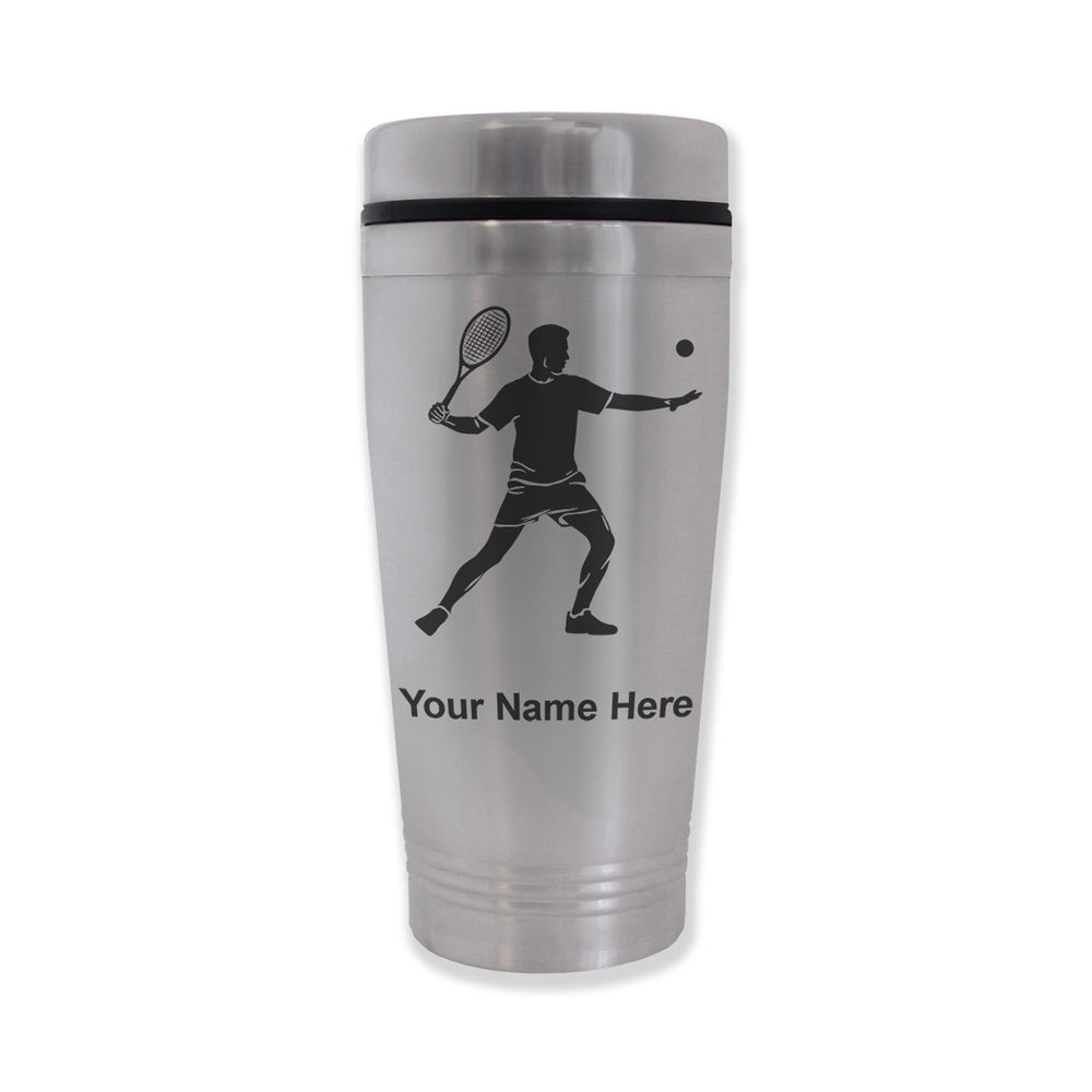 Commuter Travel Mug, Tennis Player Man, Personalized Engraving Included