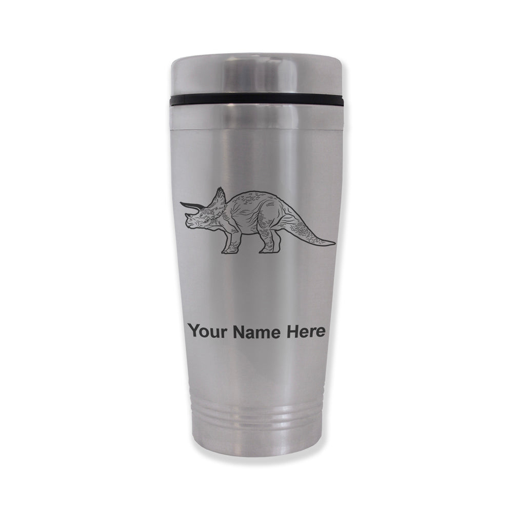 Commuter Travel Mug, Triceratops Dinosaur, Personalized Engraving Included