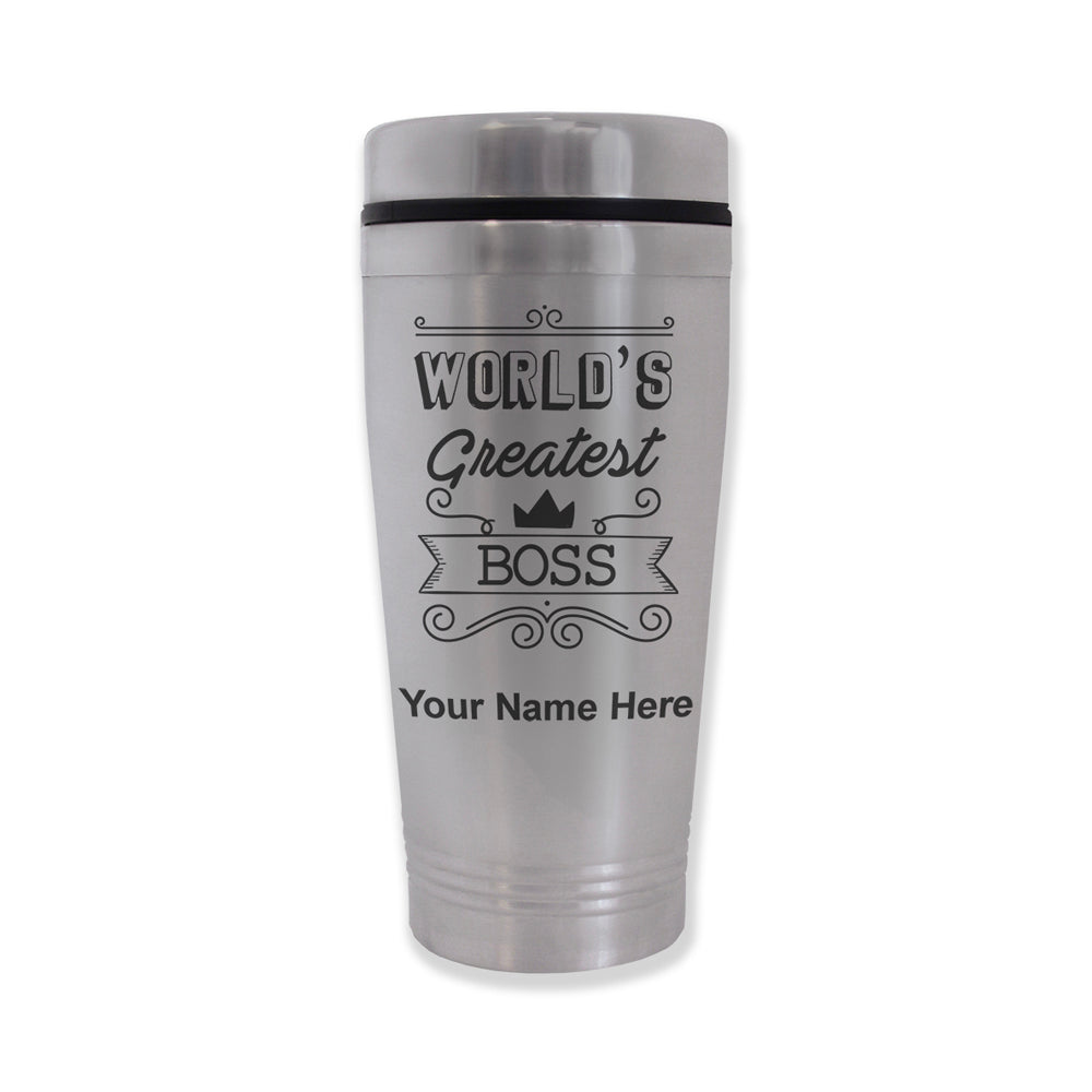 Commuter Travel Mug, World's Greatest Boss, Personalized Engraving Included