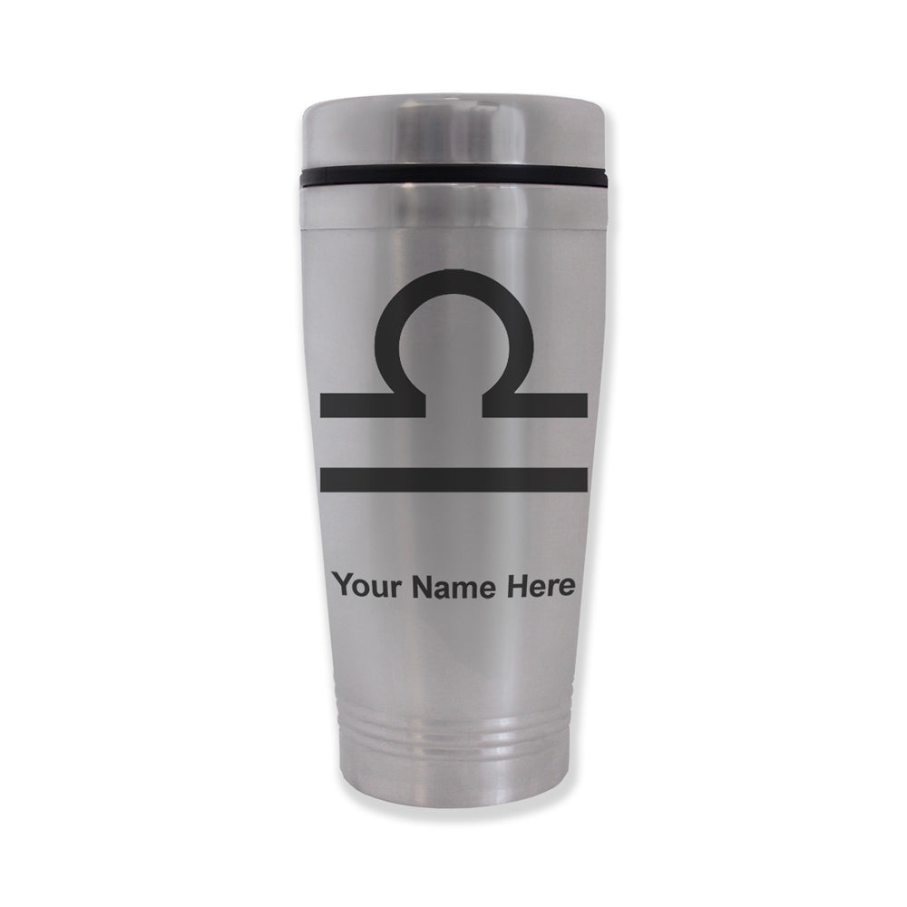 Commuter Travel Mug, Zodiac Sign Libra, Personalized Engraving Included