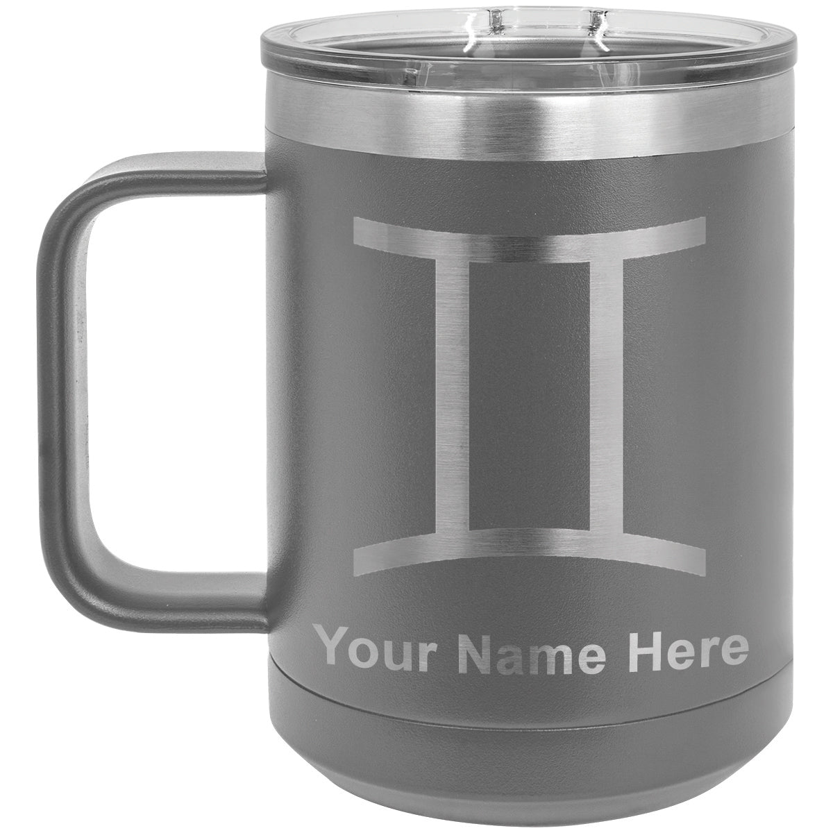 15oz Vacuum Insulated Coffee Mug, Zodiac Sign Gemini, Personalized Engraving Included