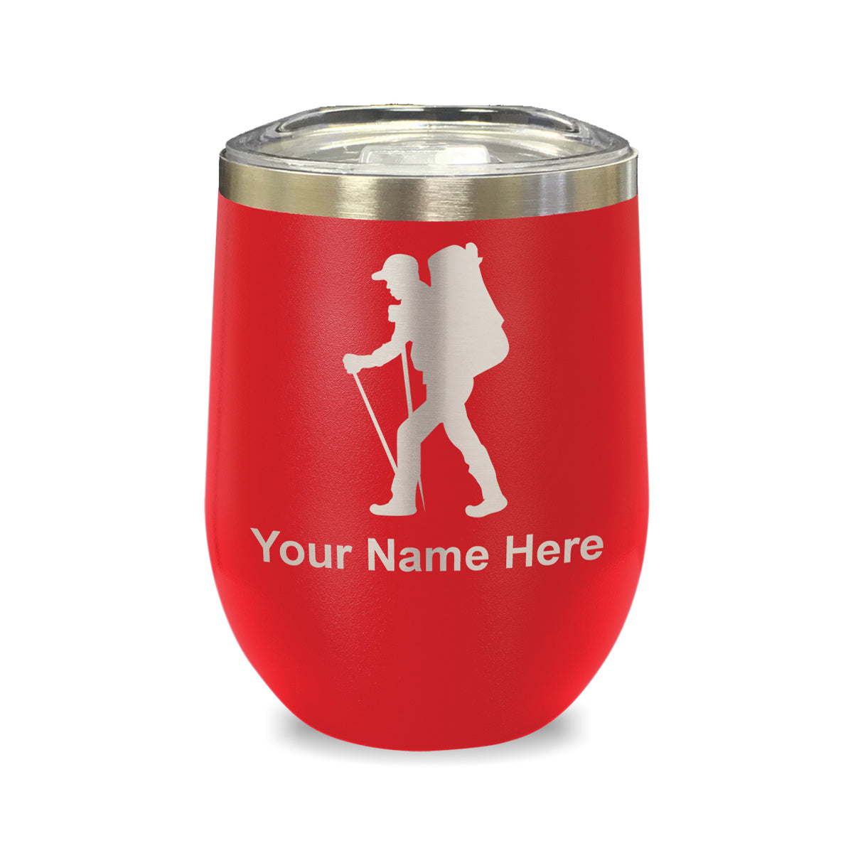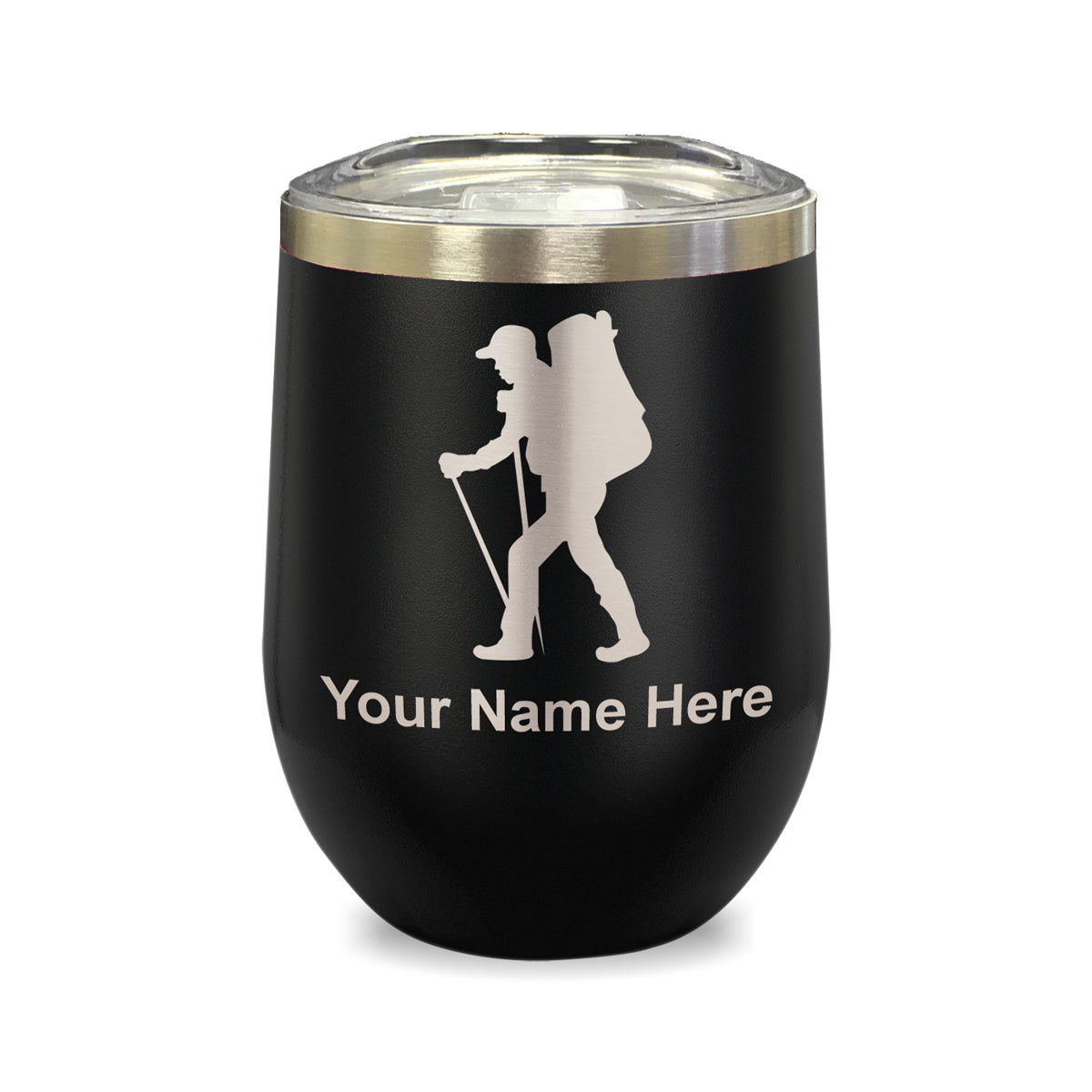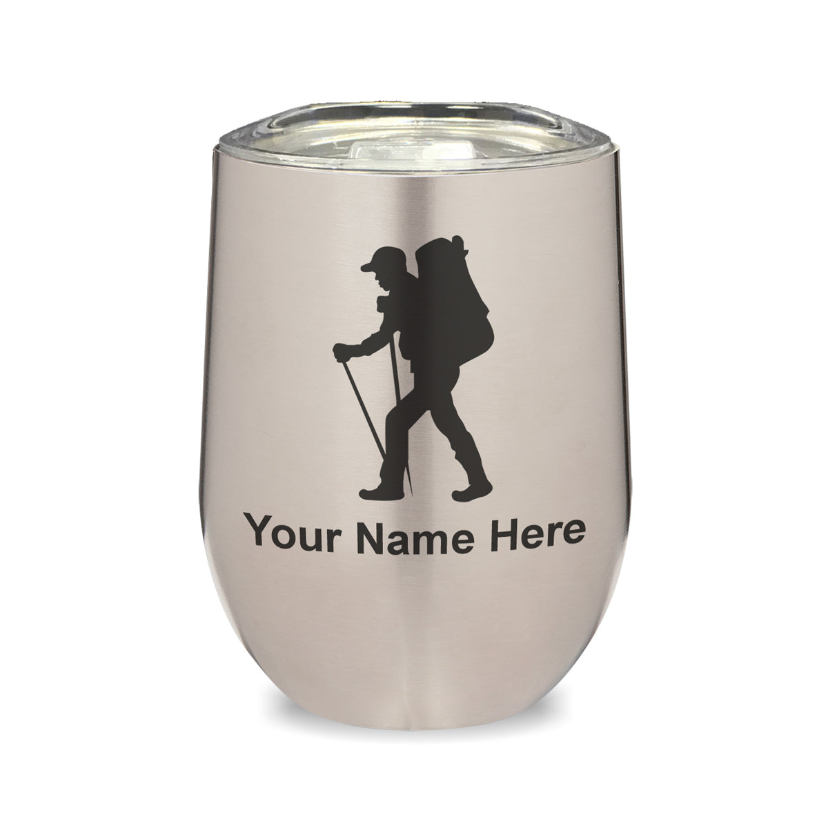 LaserGram Double Wall Stainless Steel Wine Glass, Hiker Man, Personalized Engraving Included