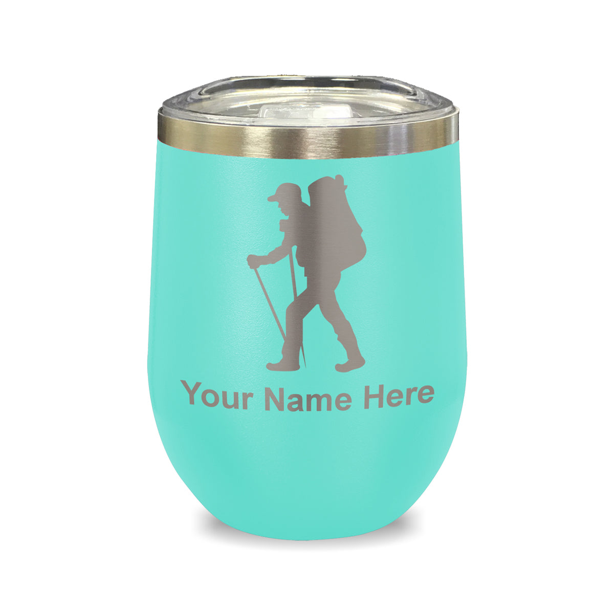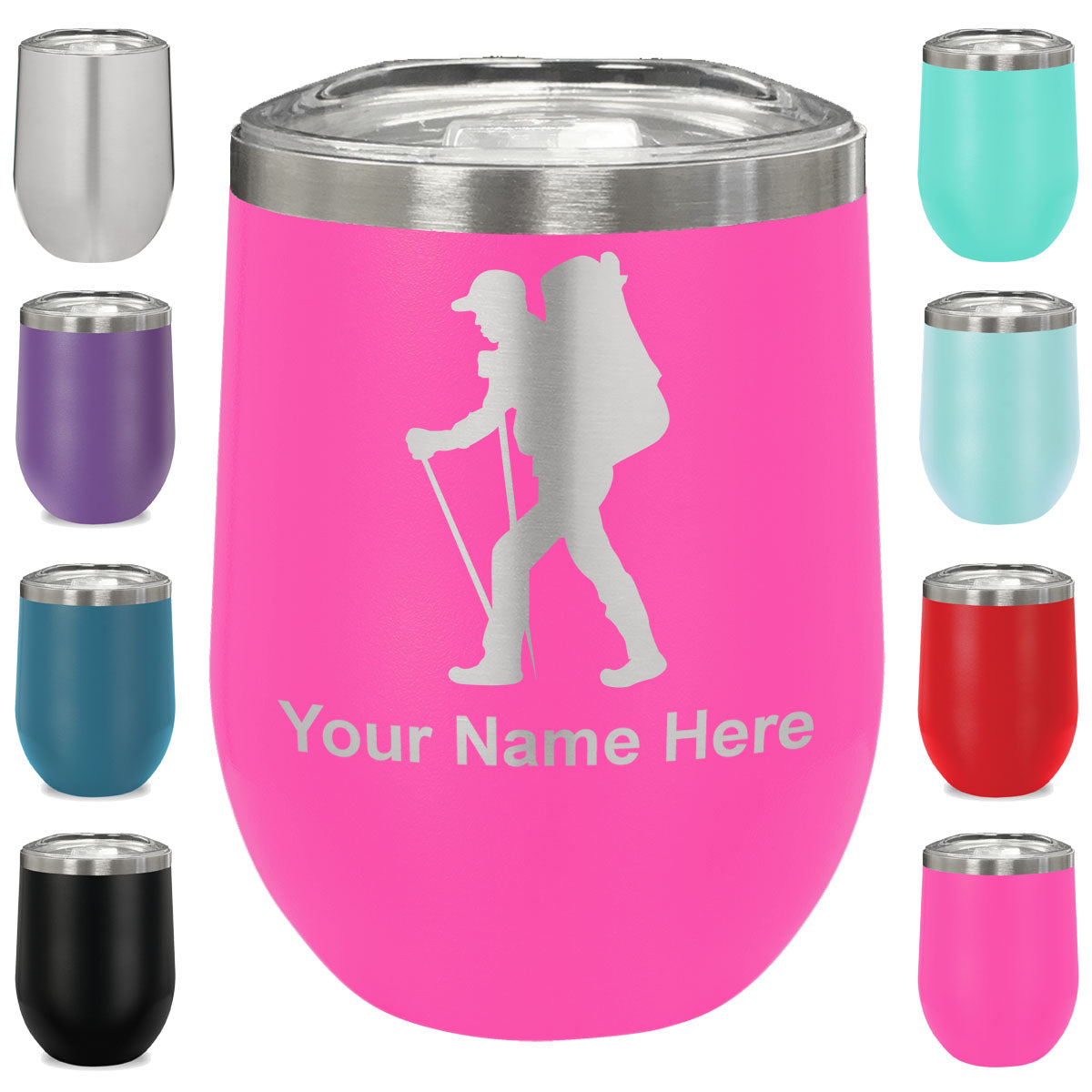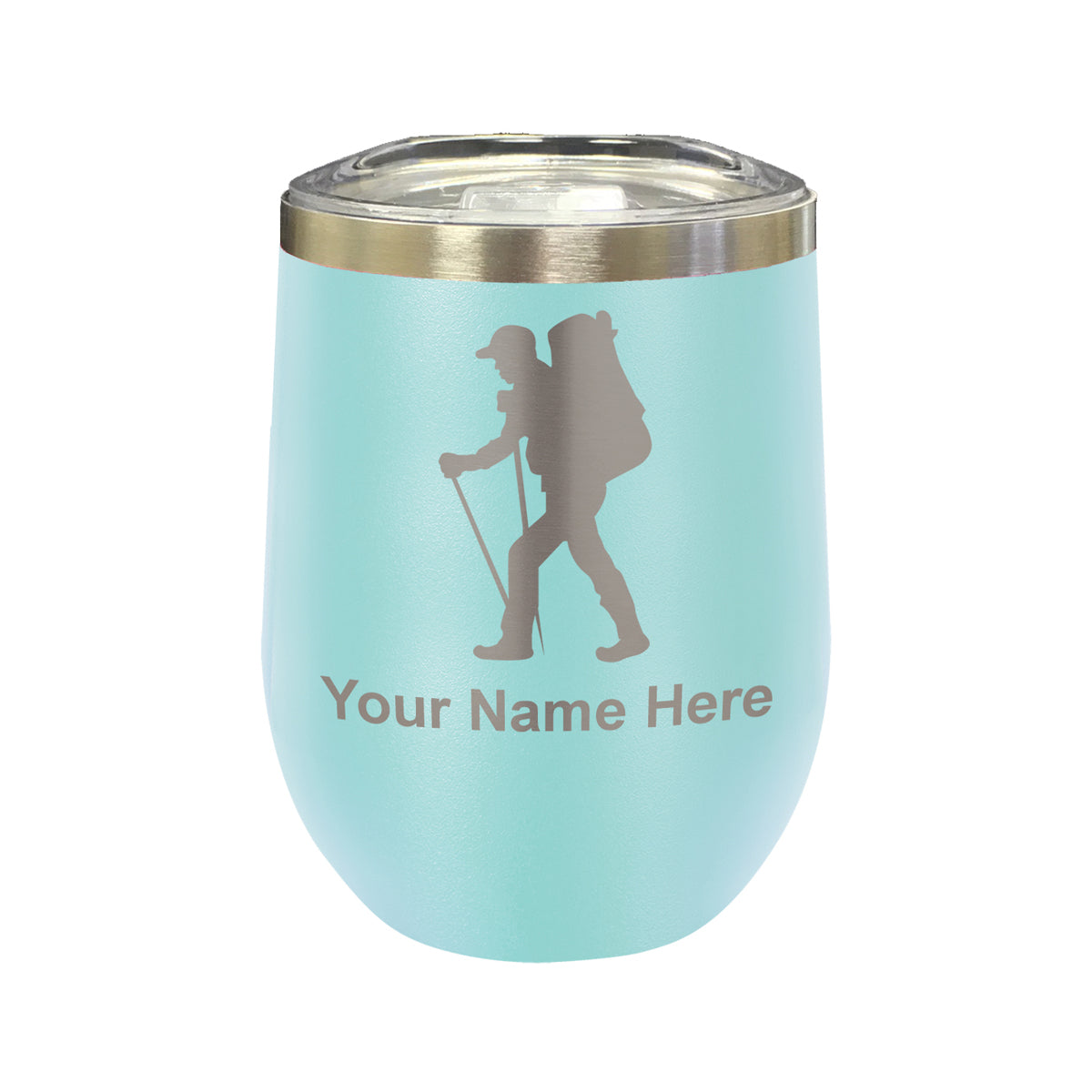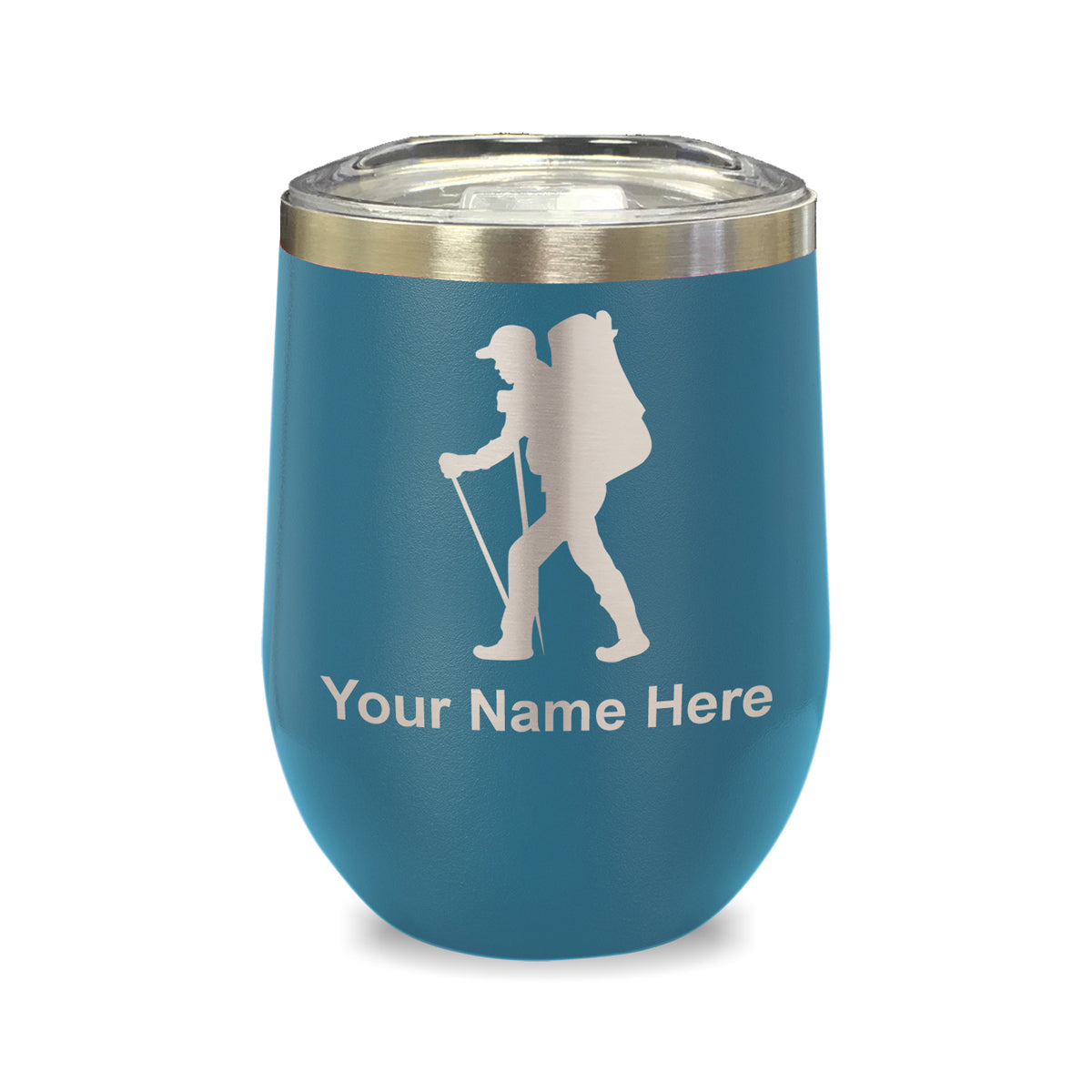 LaserGram Double Wall Stainless Steel Wine Glass, Hiker Man, Personalized Engraving Included