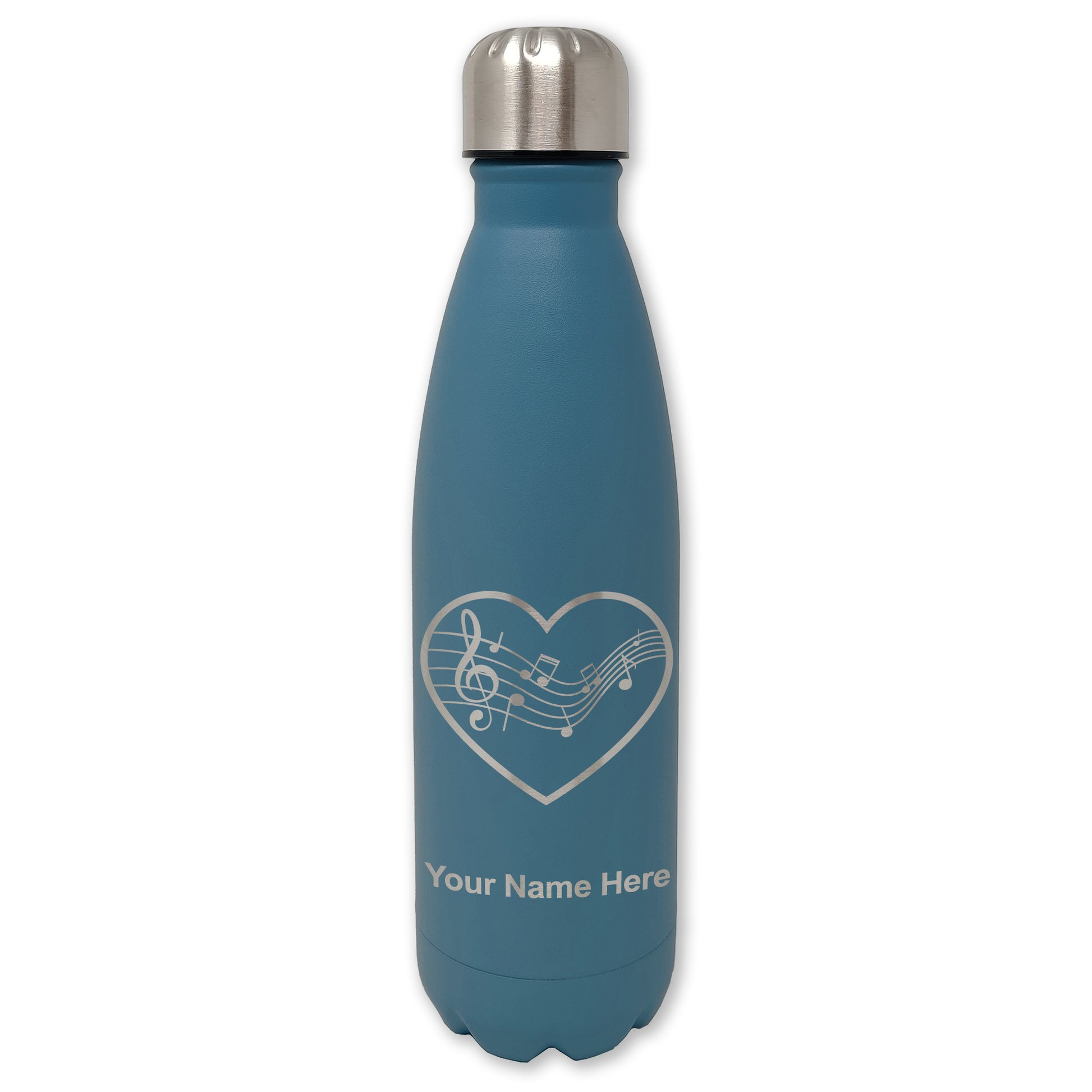 LaserGram Double Wall Water Bottle, Music Staff Heart, Personalized Engraving Included