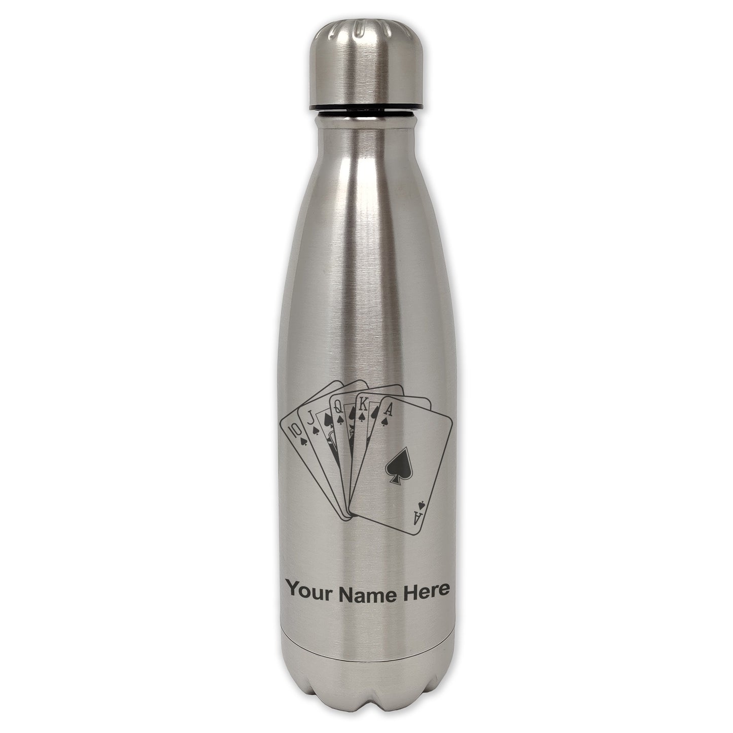 LaserGram Single Wall Water Bottle, Royal Flush Poker Cards, Personalized Engraving Included