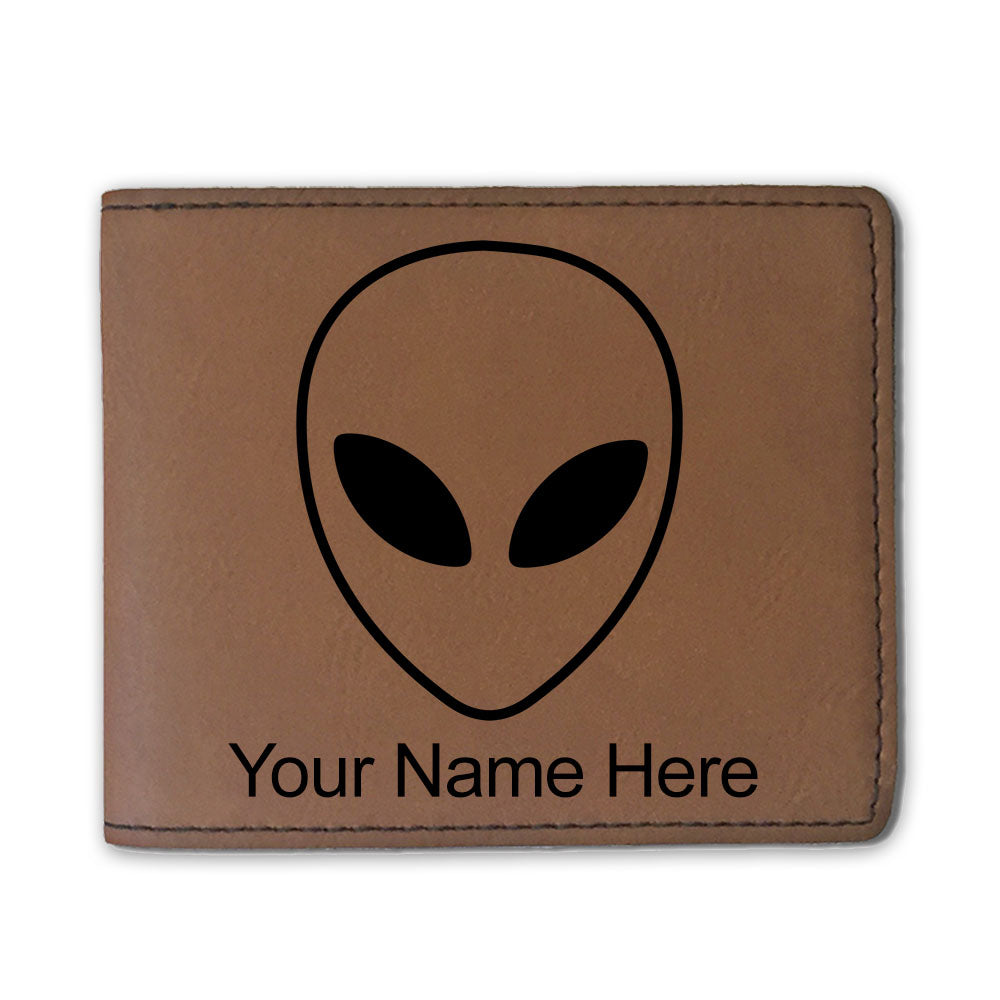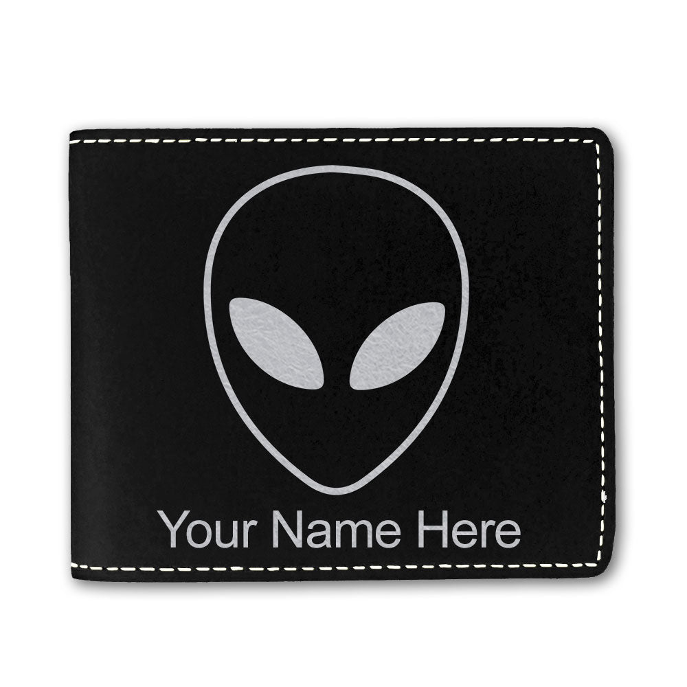 Faux Leather Bi-Fold Wallet, Alien Head, Personalized Engraving Included
