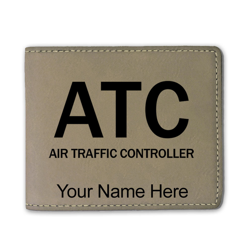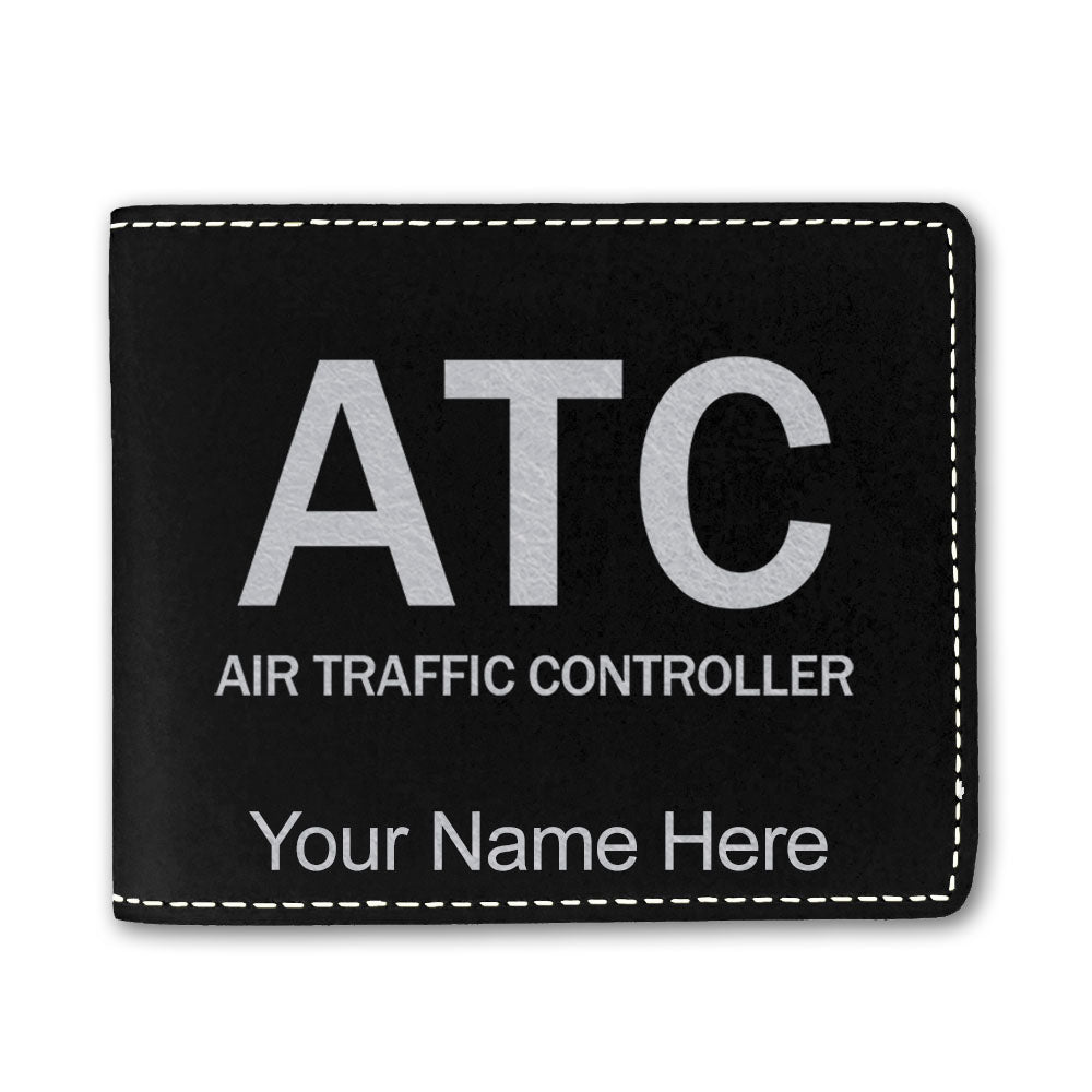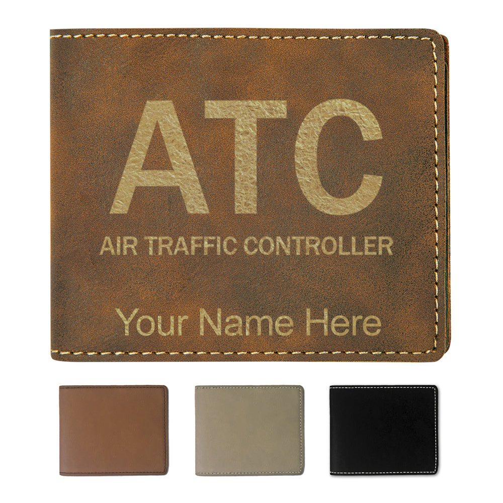 Faux Leather Bi-Fold Wallet, ATC Air Traffic Controller, Personalized Engraving Included