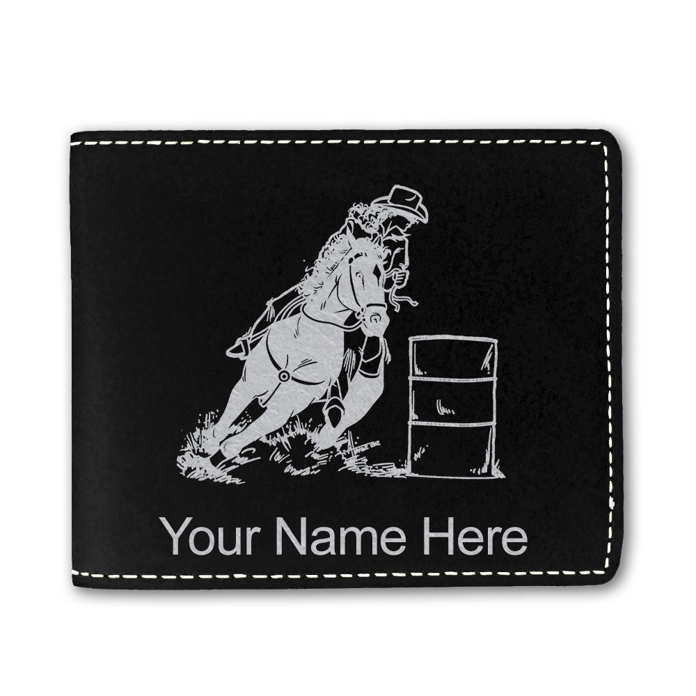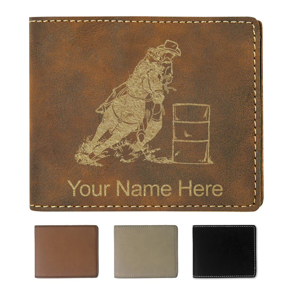 Faux Leather Bi-Fold Wallet, Barrel Racer, Personalized Engraving Included