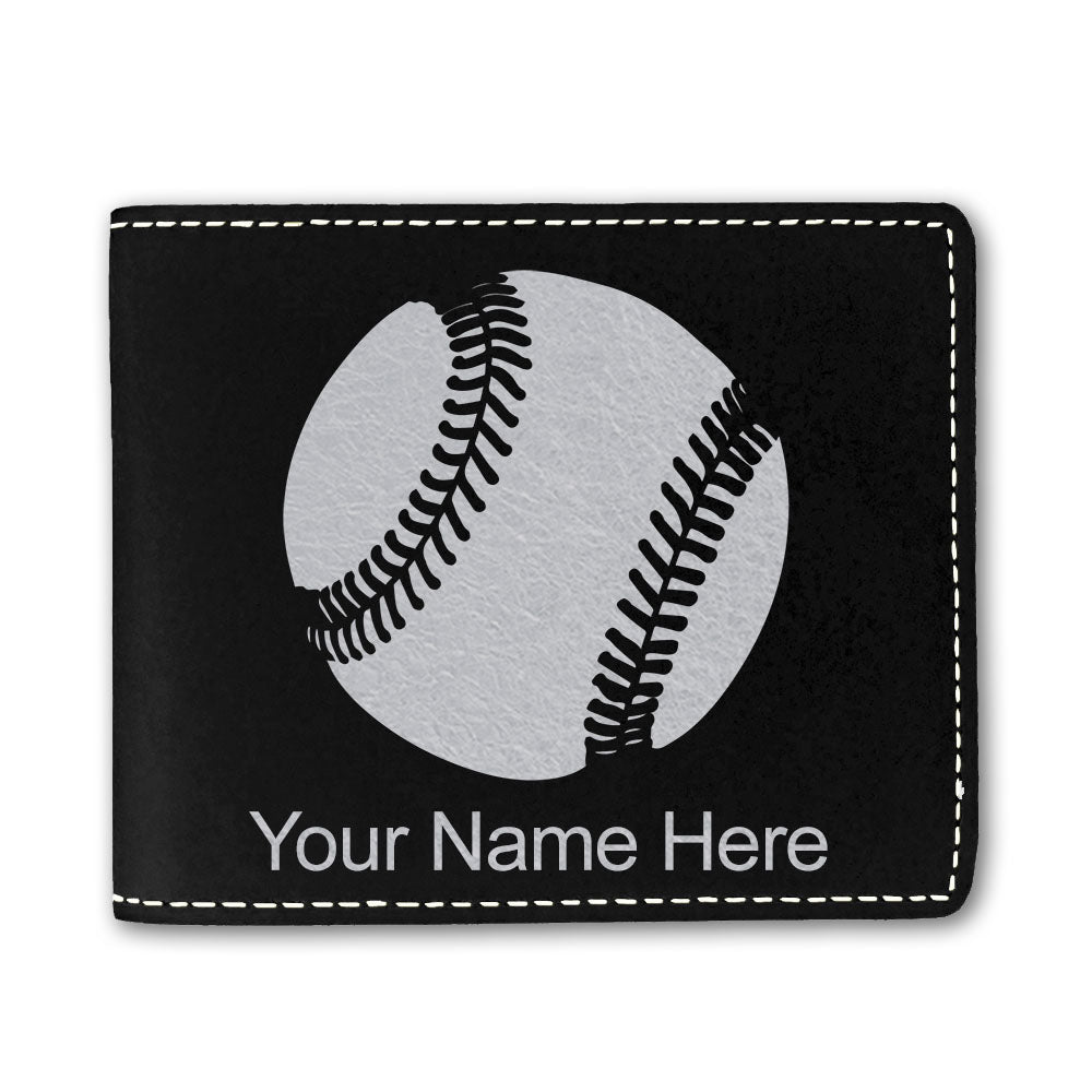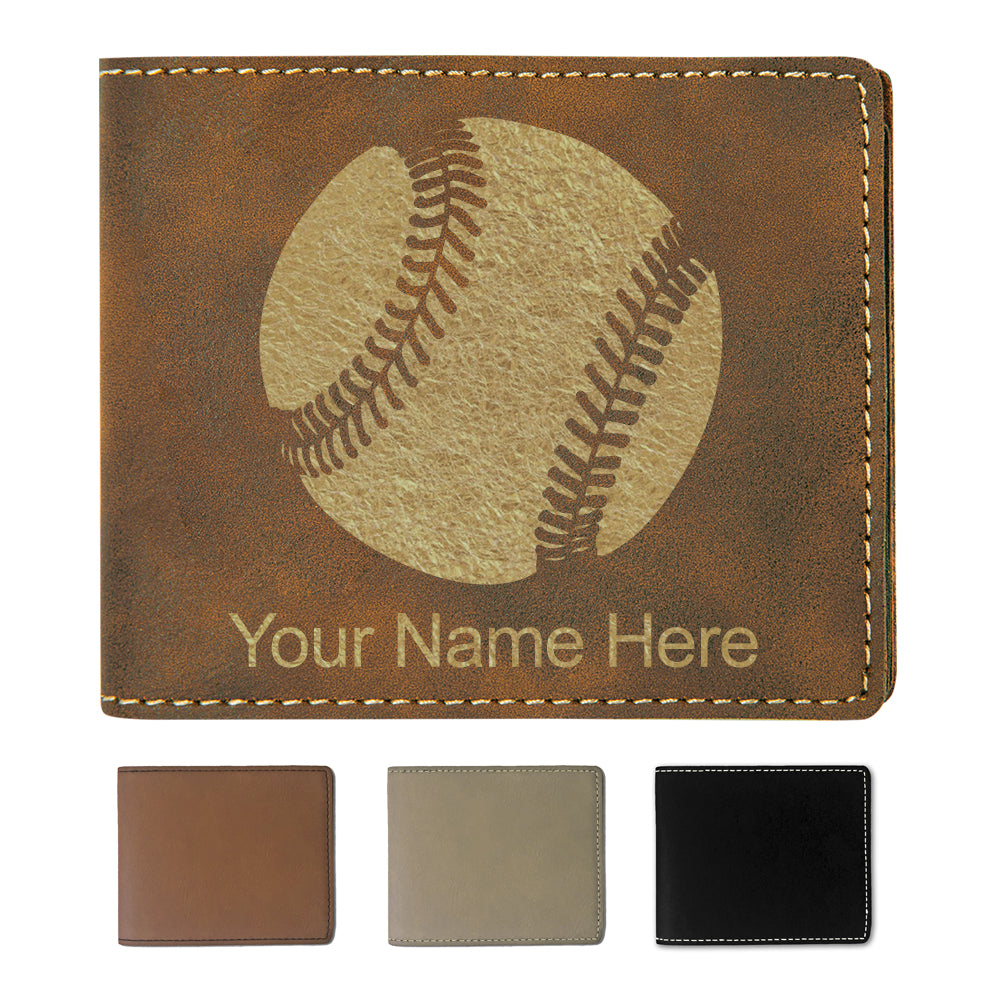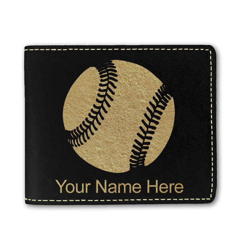 Faux Leather Bi-Fold Wallet, Baseball Ball, Personalized Engraving Included