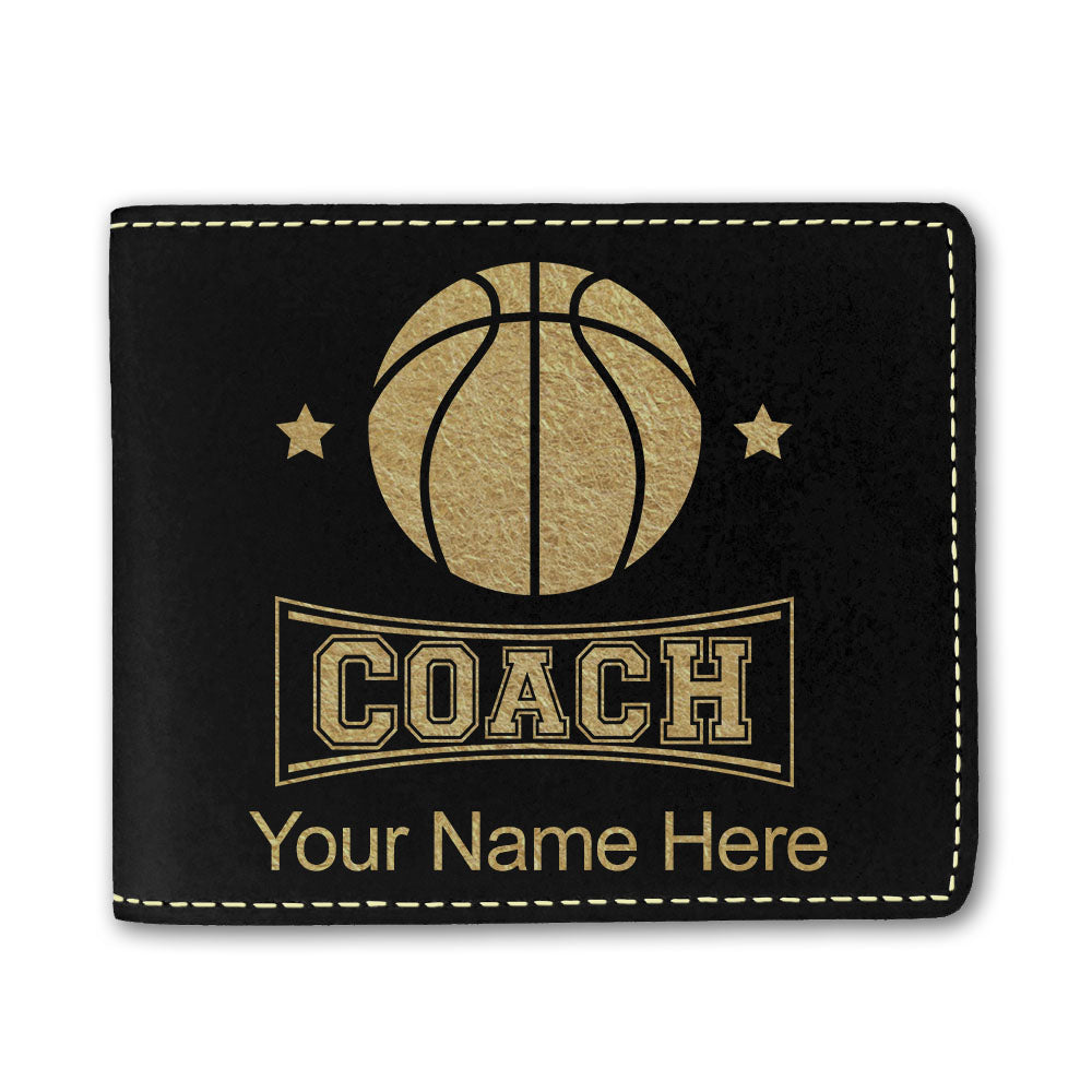Faux Leather Bi-Fold Wallet, Basketball Coach, Personalized Engraving Included