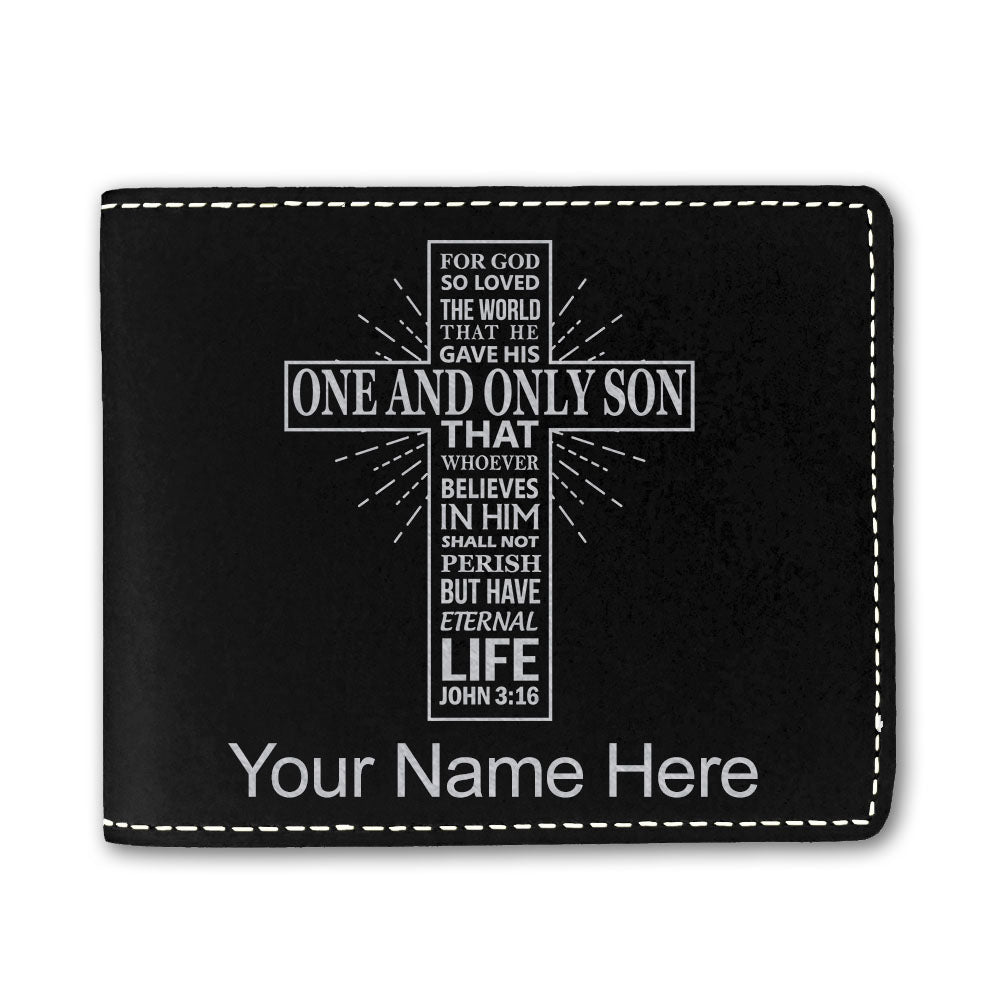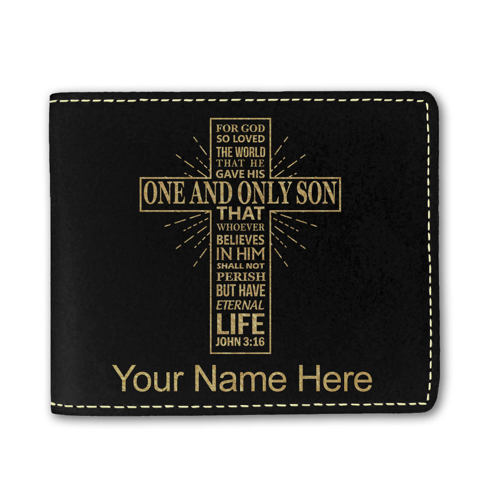 Faux Leather Bi-Fold Wallet, Bible Verse John 3-16, Personalized Engraving Included