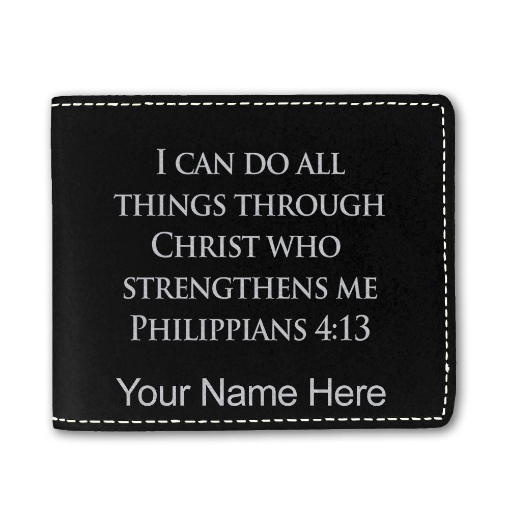 Faux Leather Bi-Fold Wallet, Bible Verse Philippians 4-13, Personalized Engraving Included