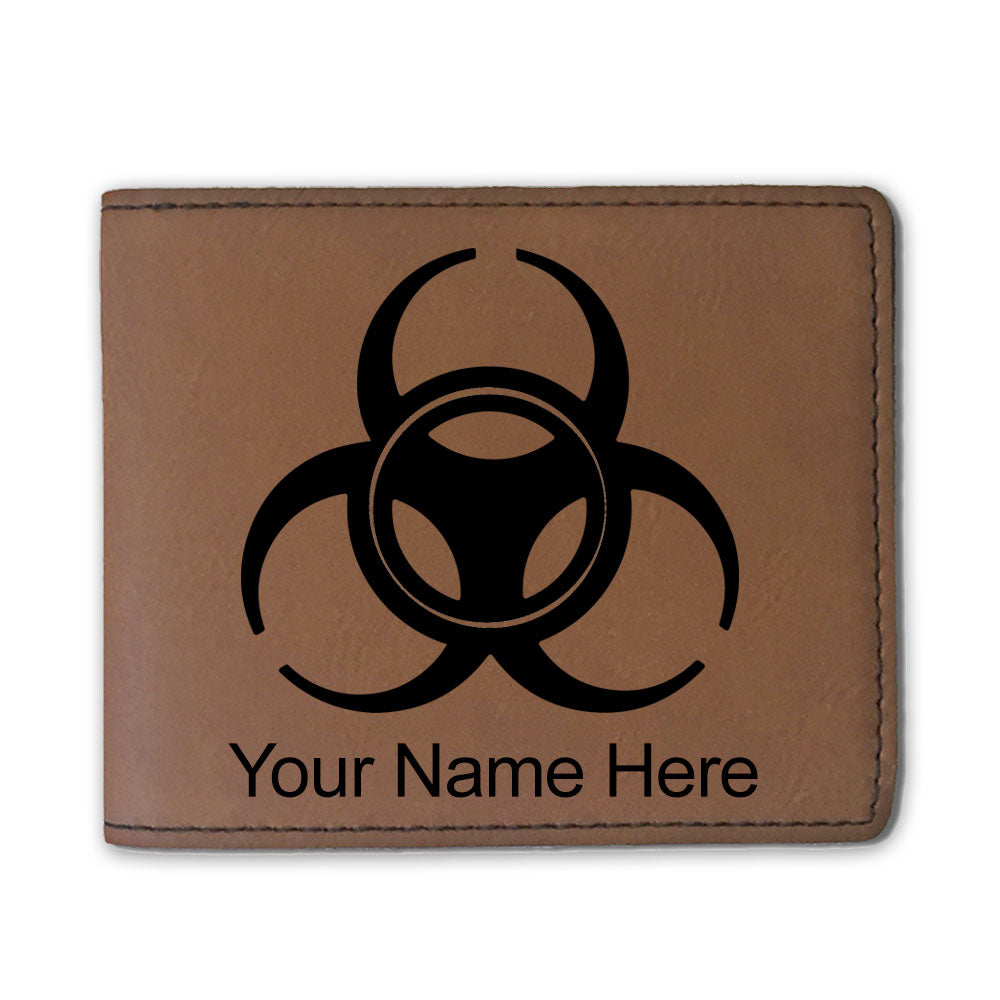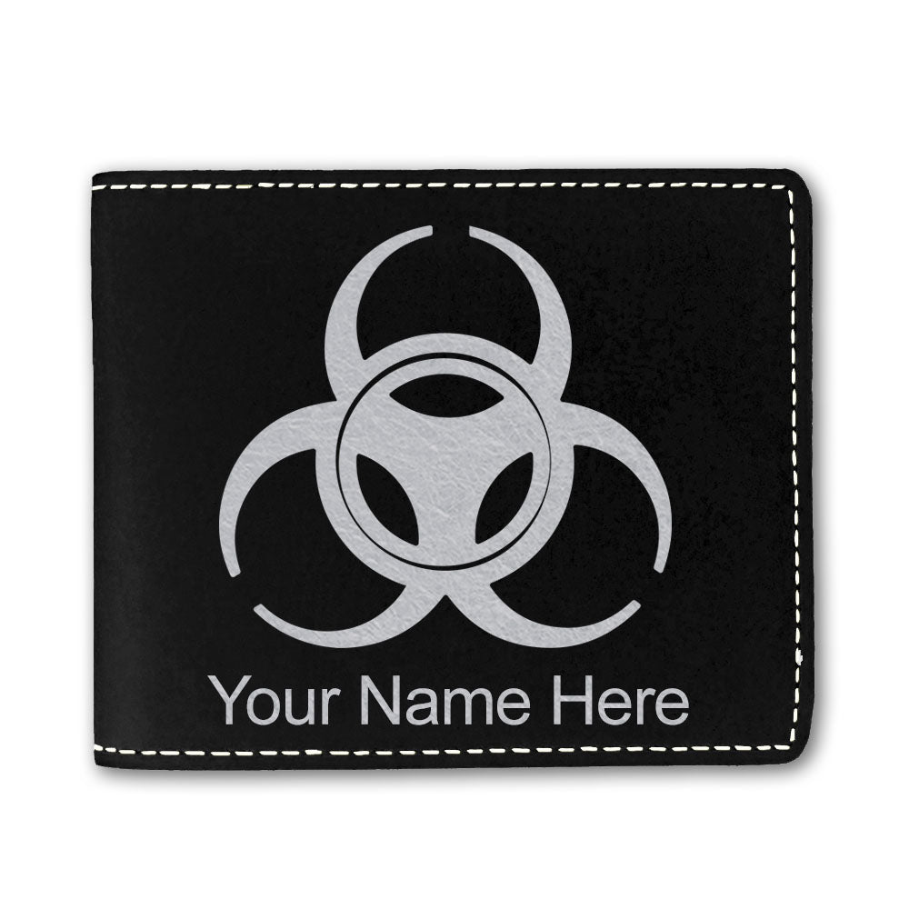 Faux Leather Bi-Fold Wallet, Biohazard Symbol, Personalized Engraving Included