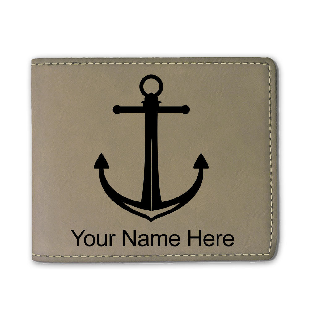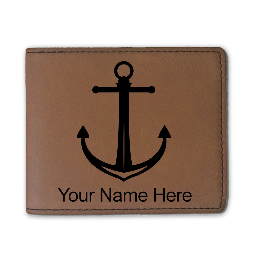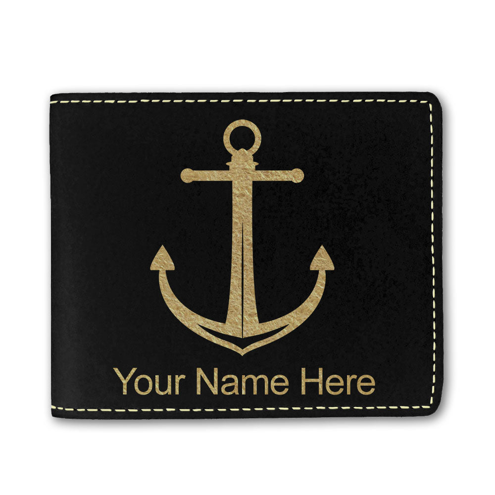 Faux Leather Bi-Fold Wallet, Boat Anchor, Personalized Engraving Included