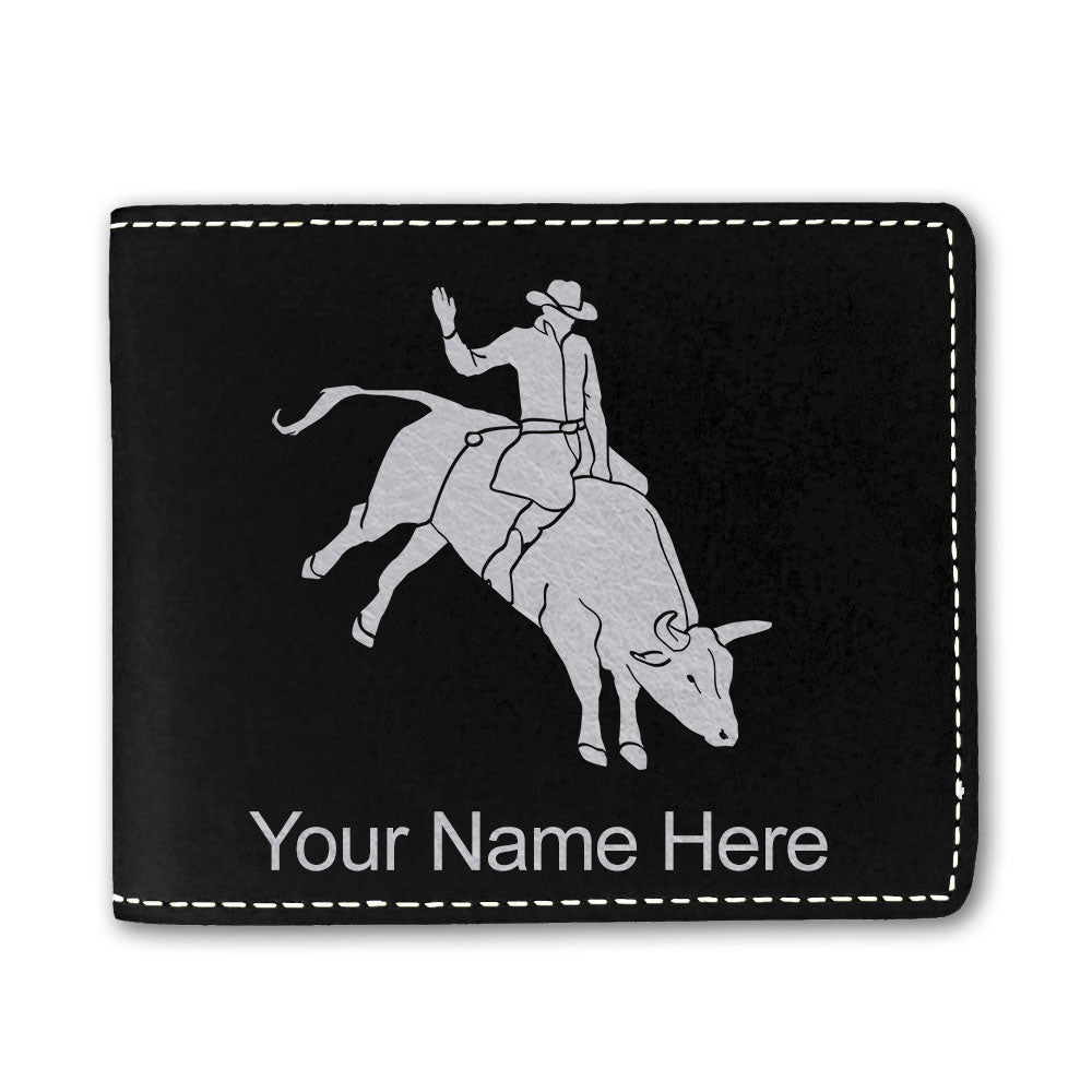 Faux Leather Bi-Fold Wallet, Bull Rider Cowboy, Personalized Engraving Included