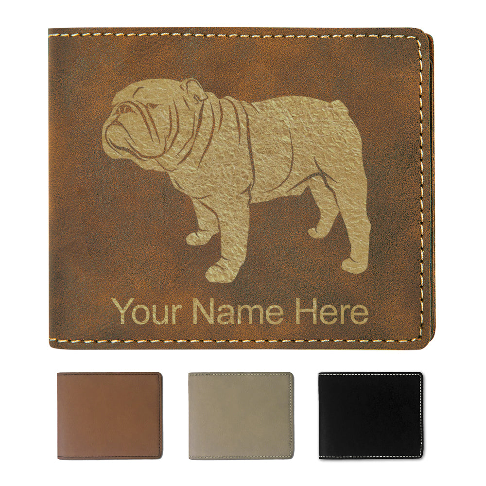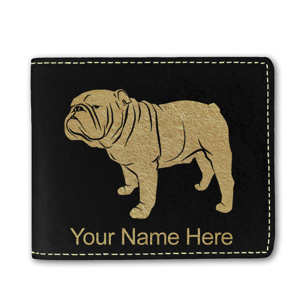 Faux Leather Bi-Fold Wallet, Bulldog Dog, Personalized Engraving Included