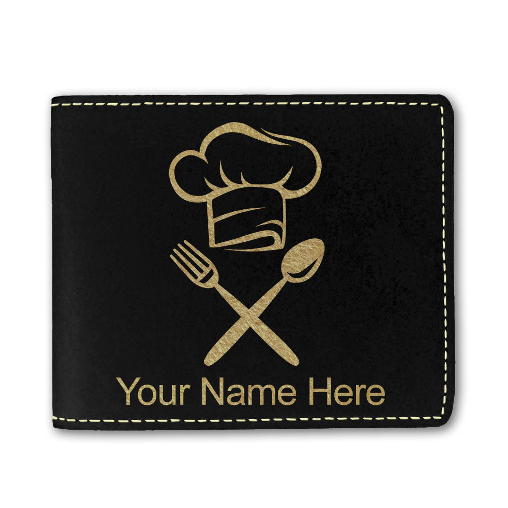 Faux Leather Bi-Fold Wallet, Chef Hat, Personalized Engraving Included