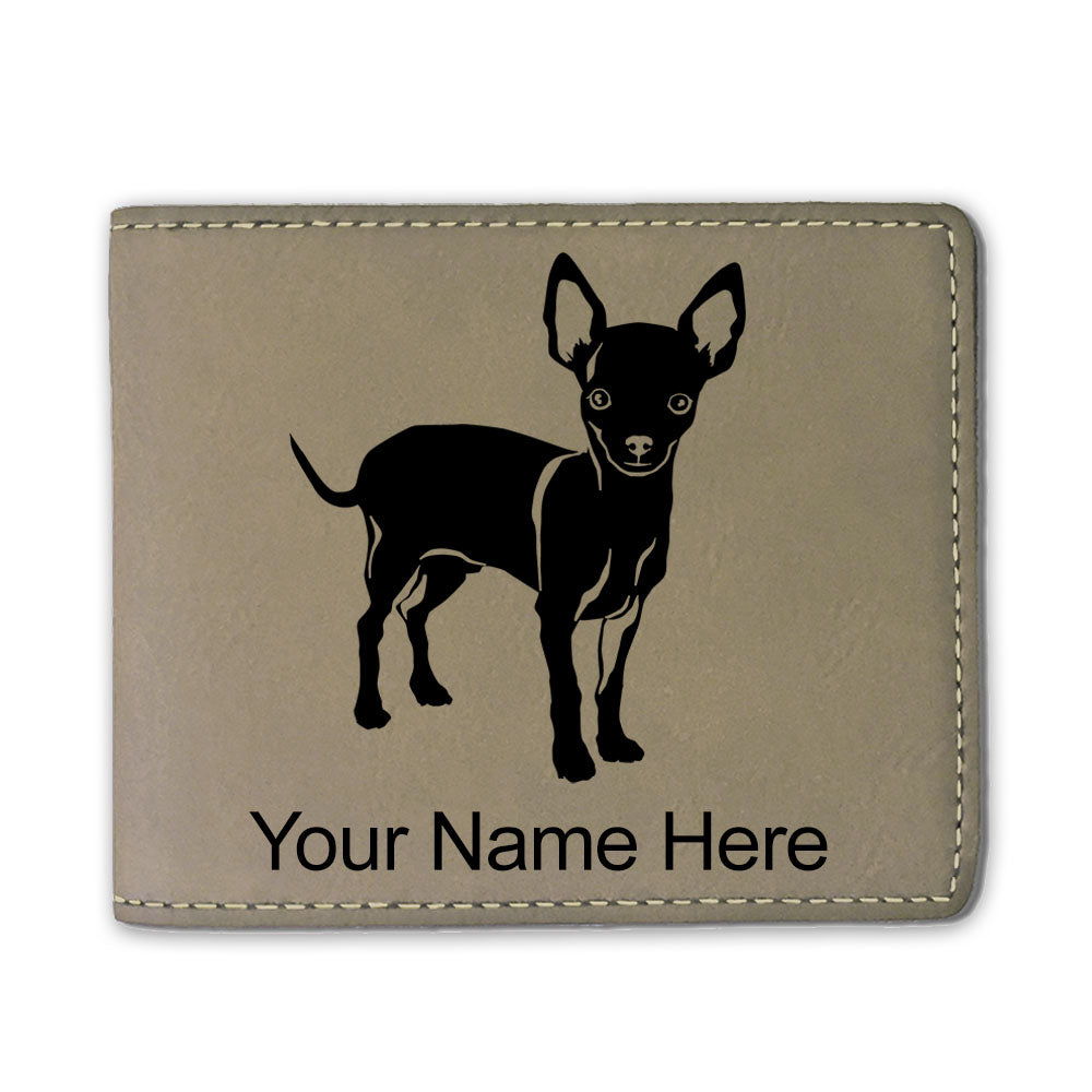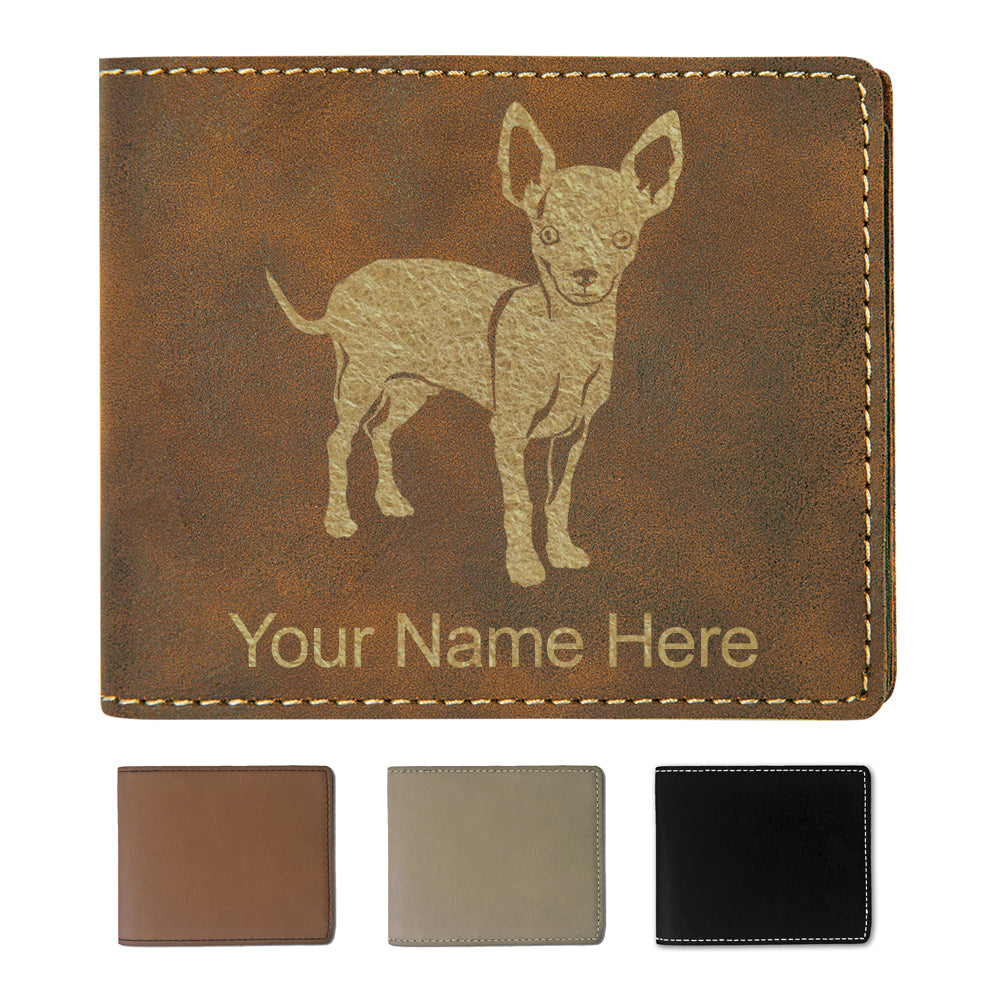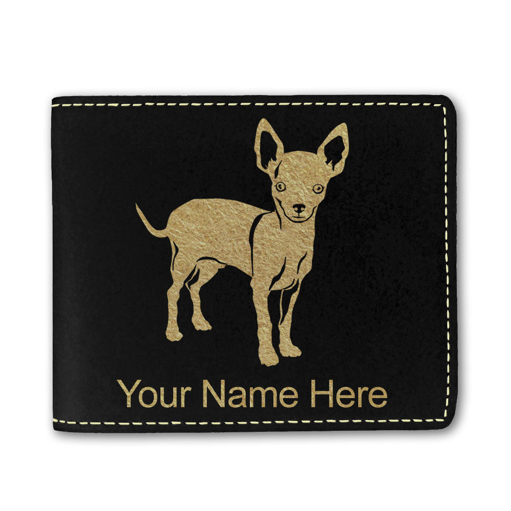 Faux Leather Bi-Fold Wallet, Chihuahua Dog, Personalized Engraving Included