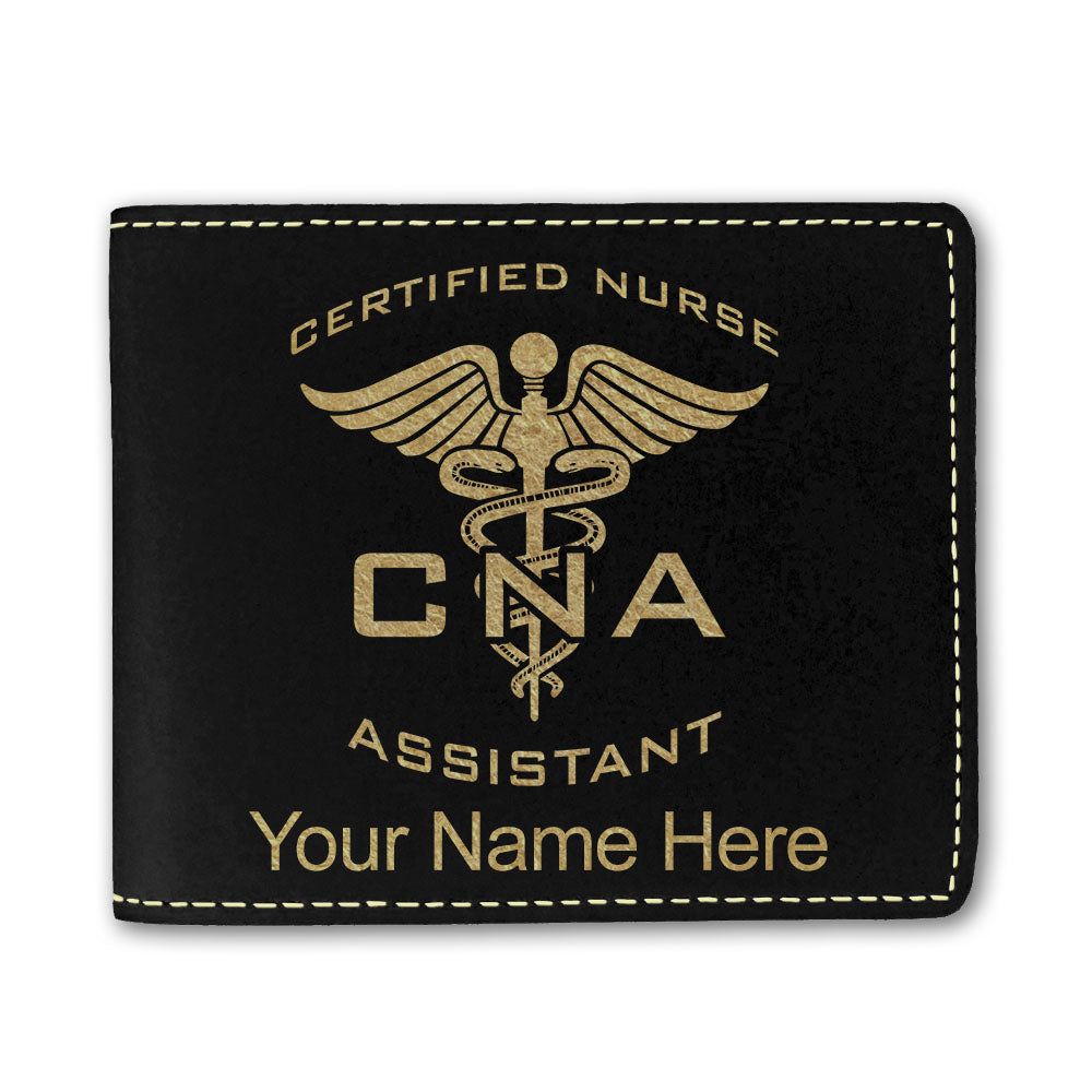 Faux Leather Bi-Fold Wallet, CNA Certified Nurse Assistant, Personalized Engraving Included