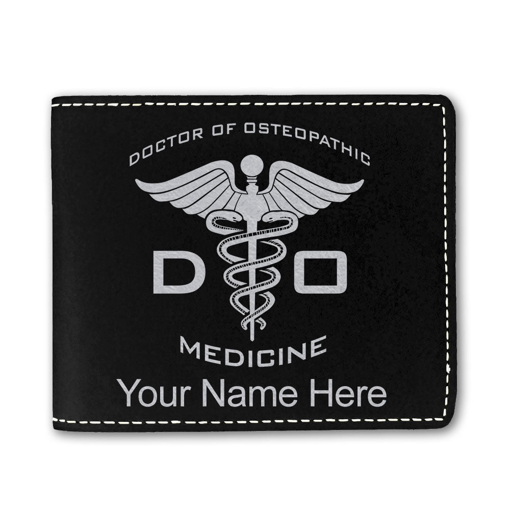 Faux Leather Bi-Fold Wallet, DO Doctor of Osteopathic Medicine, Personalized Engraving Included