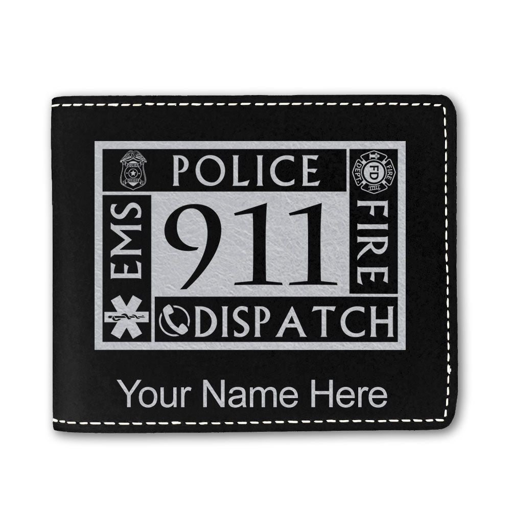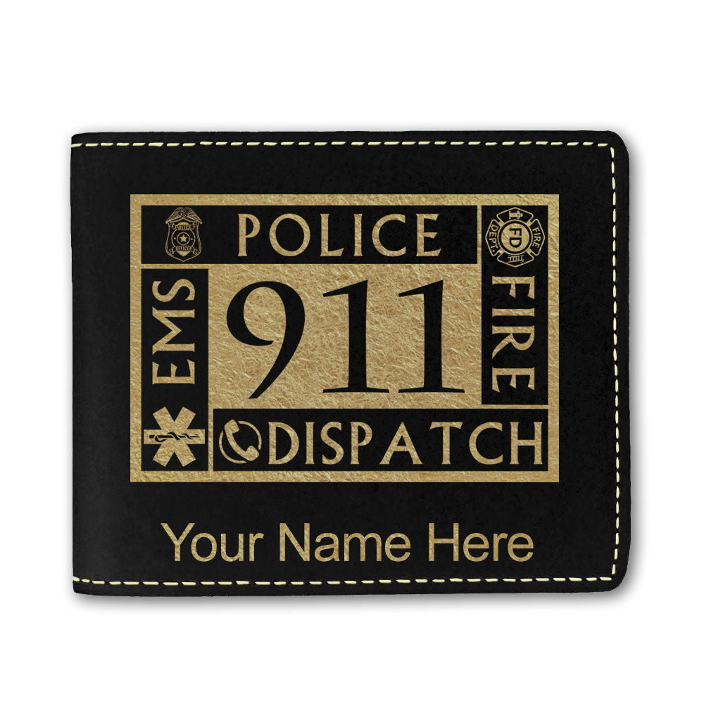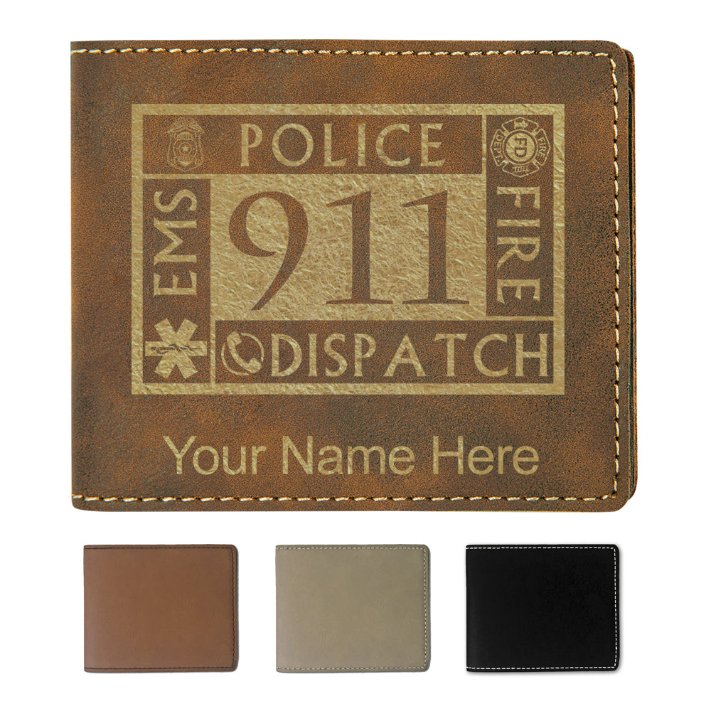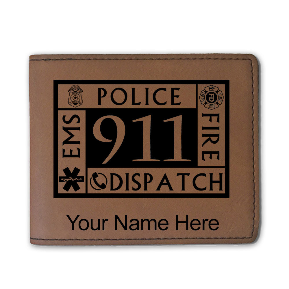 Faux Leather Bi-Fold Wallet, Emergency Dispatcher 911, Personalized Engraving Included
