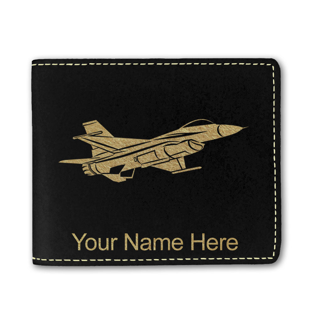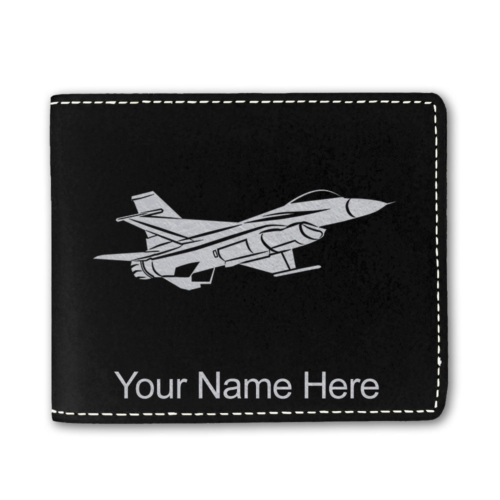 Faux Leather Bi-Fold Wallet, Fighter Jet 1, Personalized Engraving Included