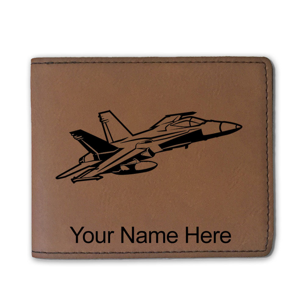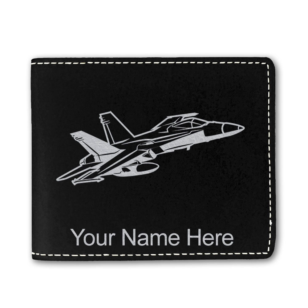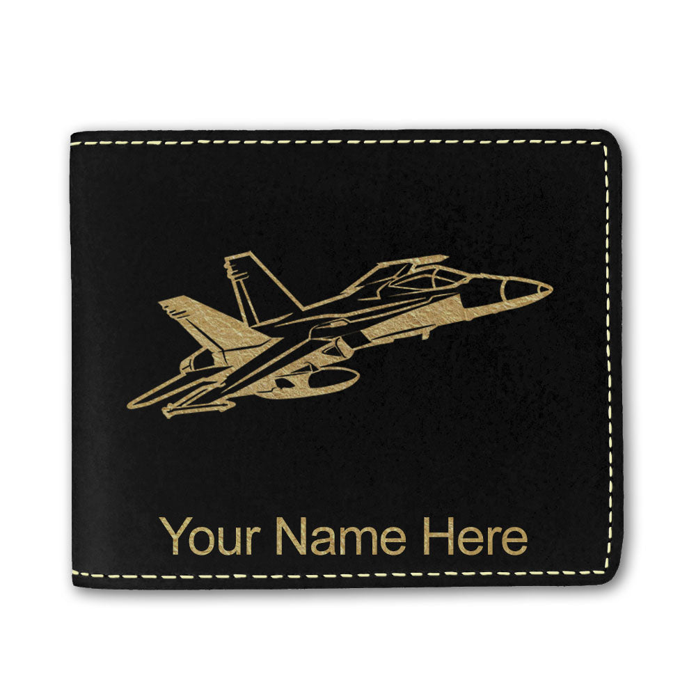Faux Leather Bi-Fold Wallet, Fighter Jet 2, Personalized Engraving Included