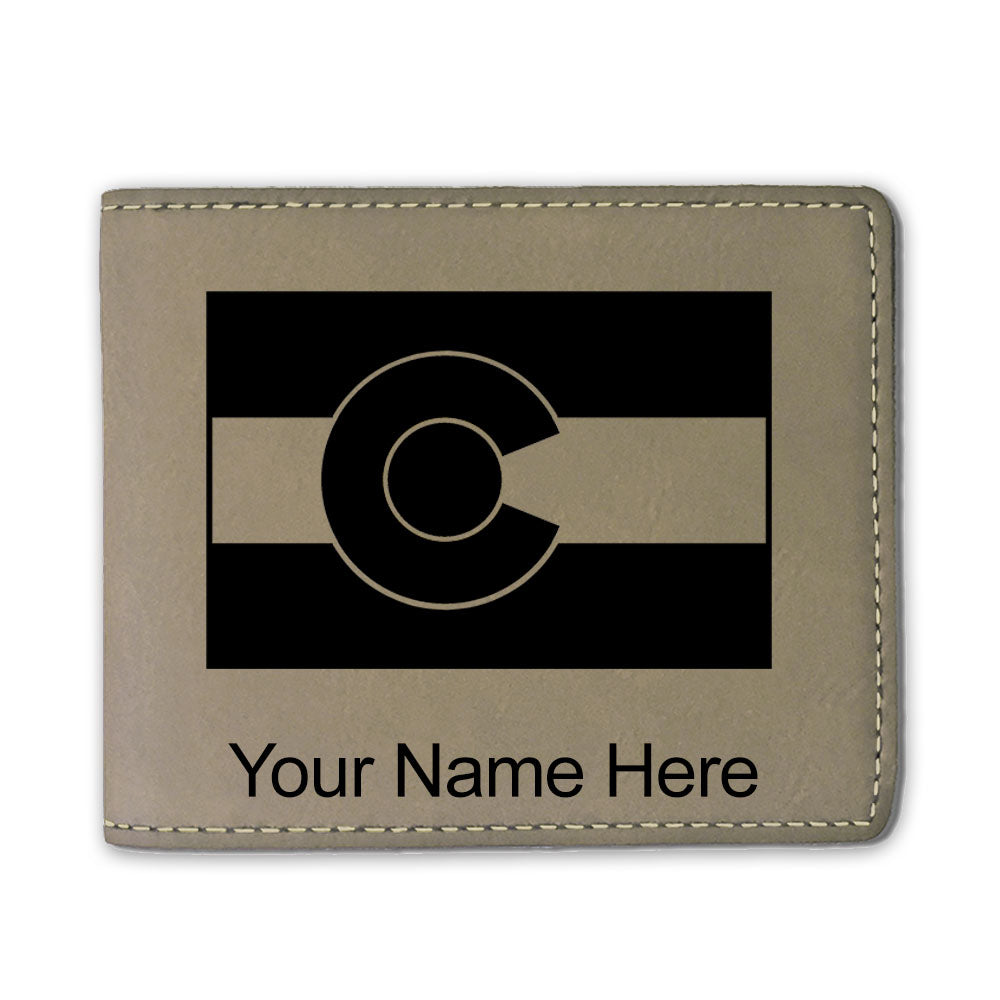 Faux Leather Bi-Fold Wallet, Flag of Colorado, Personalized Engraving Included