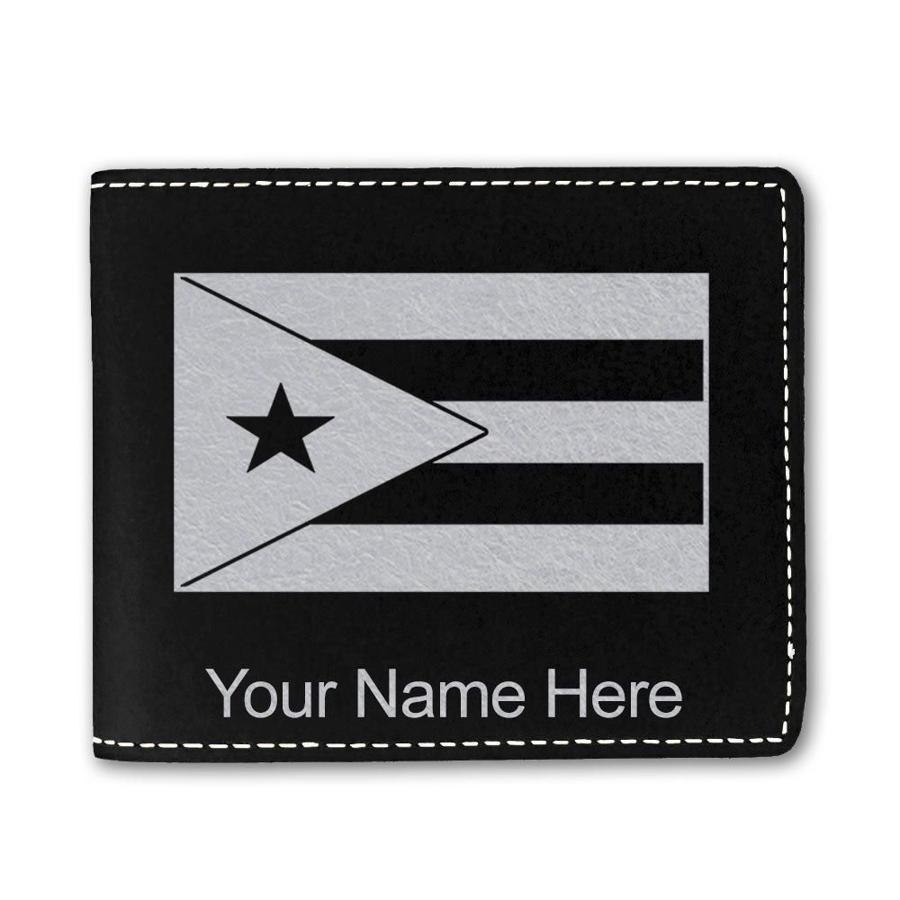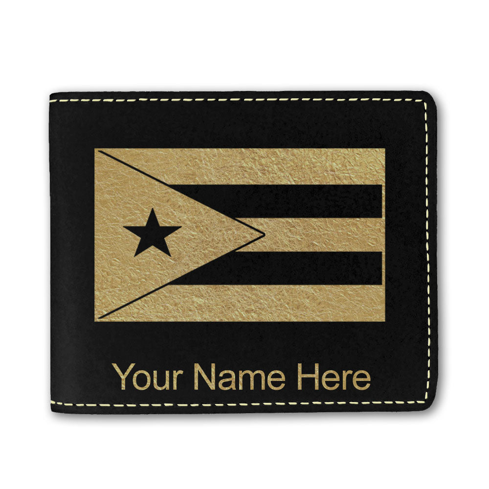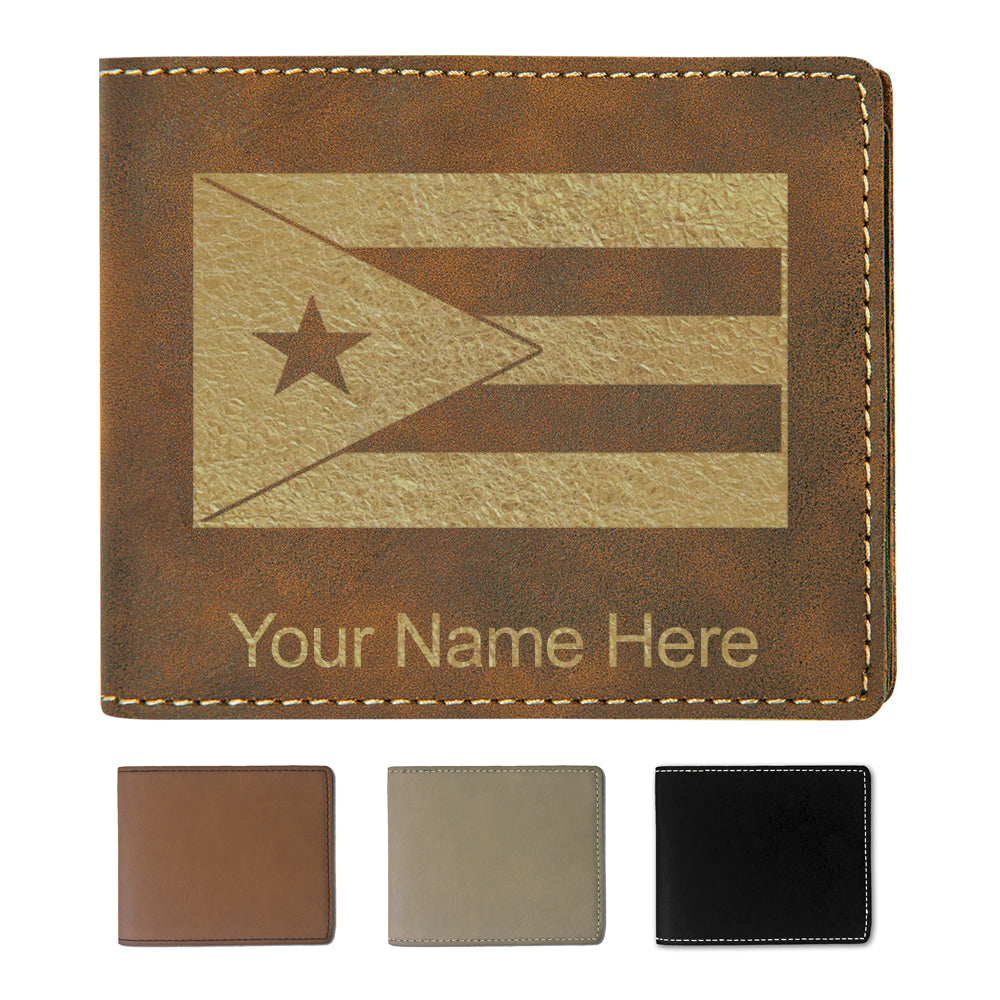 Faux Leather Bi-Fold Wallet, Flag of Puerto Rico, Personalized Engraving Included