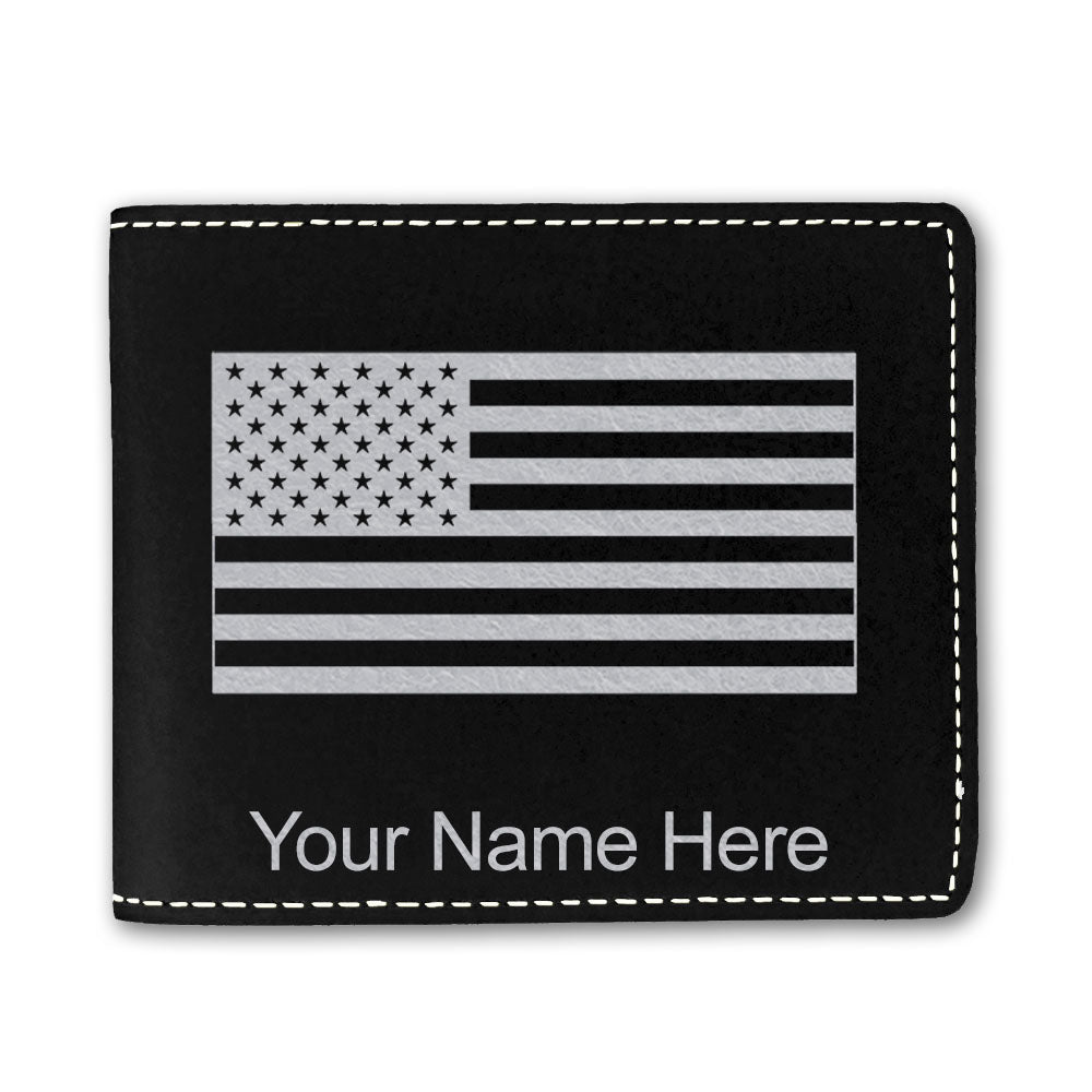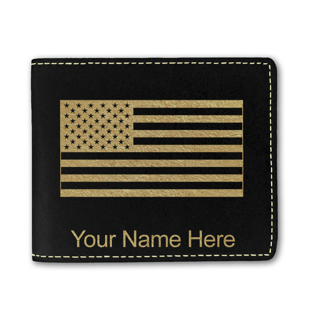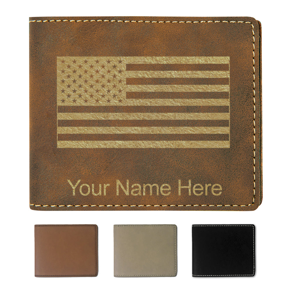 Faux Leather Bi-Fold Wallet, Flag of the United States, Personalized Engraving Included