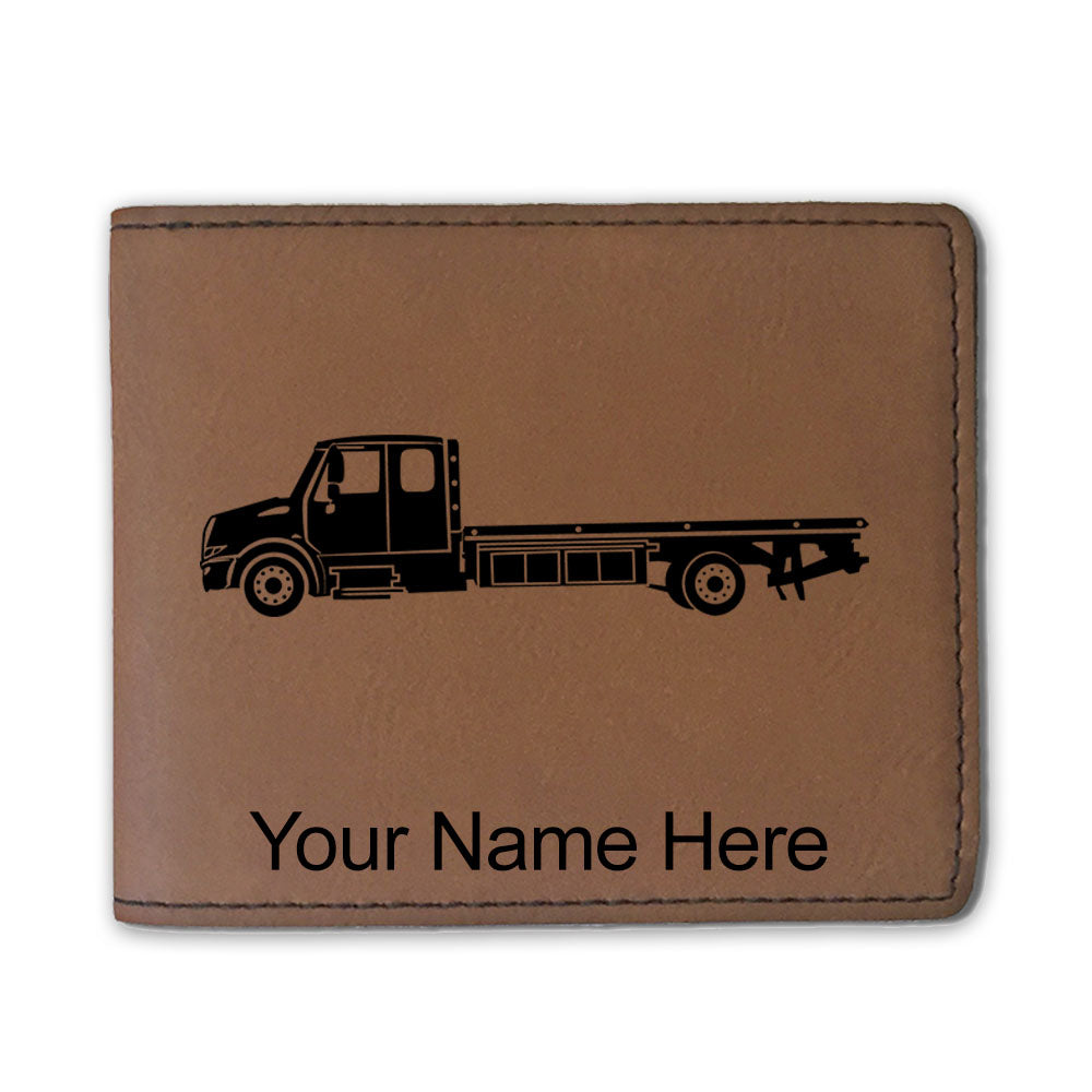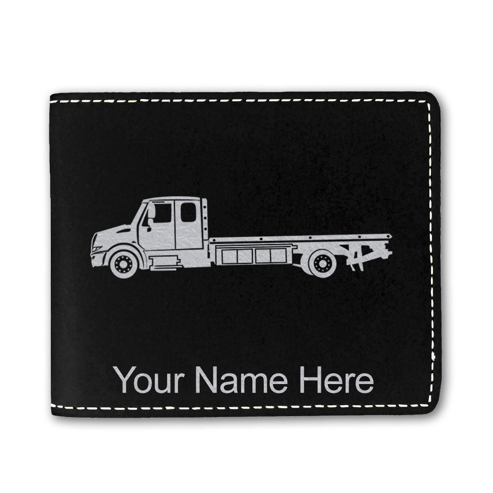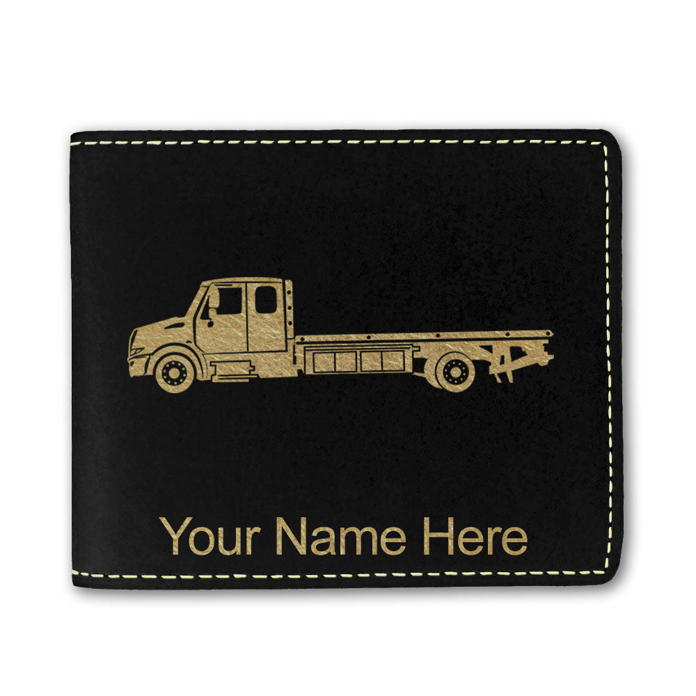 Faux Leather Bi-Fold Wallet, Flat Bed Tow Truck, Personalized Engraving Included