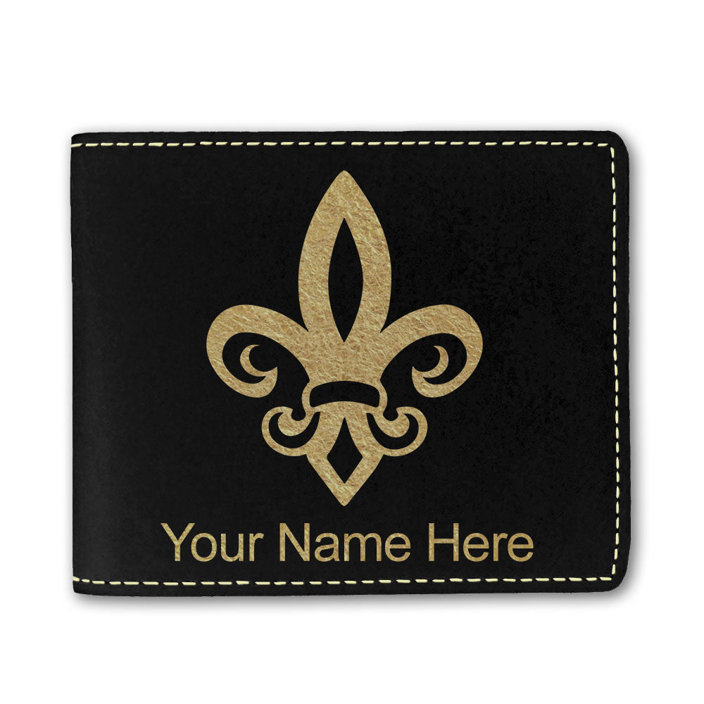 Faux Leather Bi-Fold Wallet, Fleur de Lis, Personalized Engraving Included