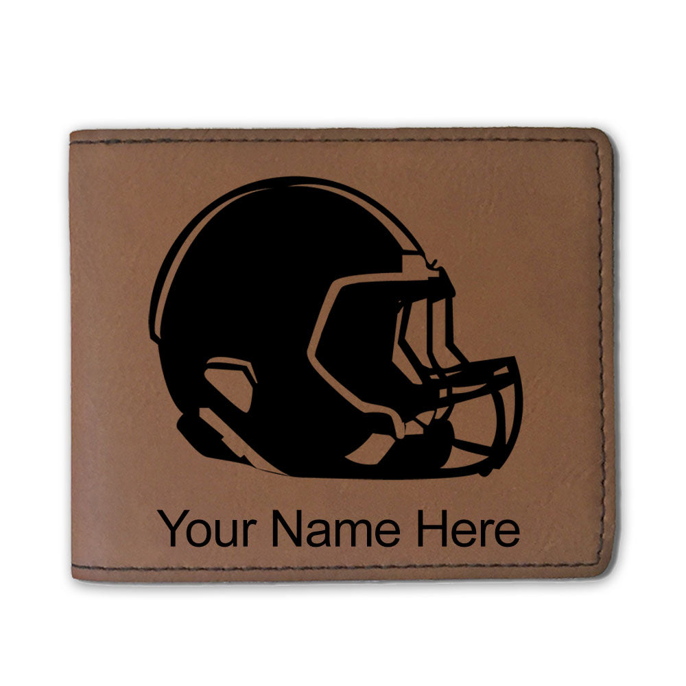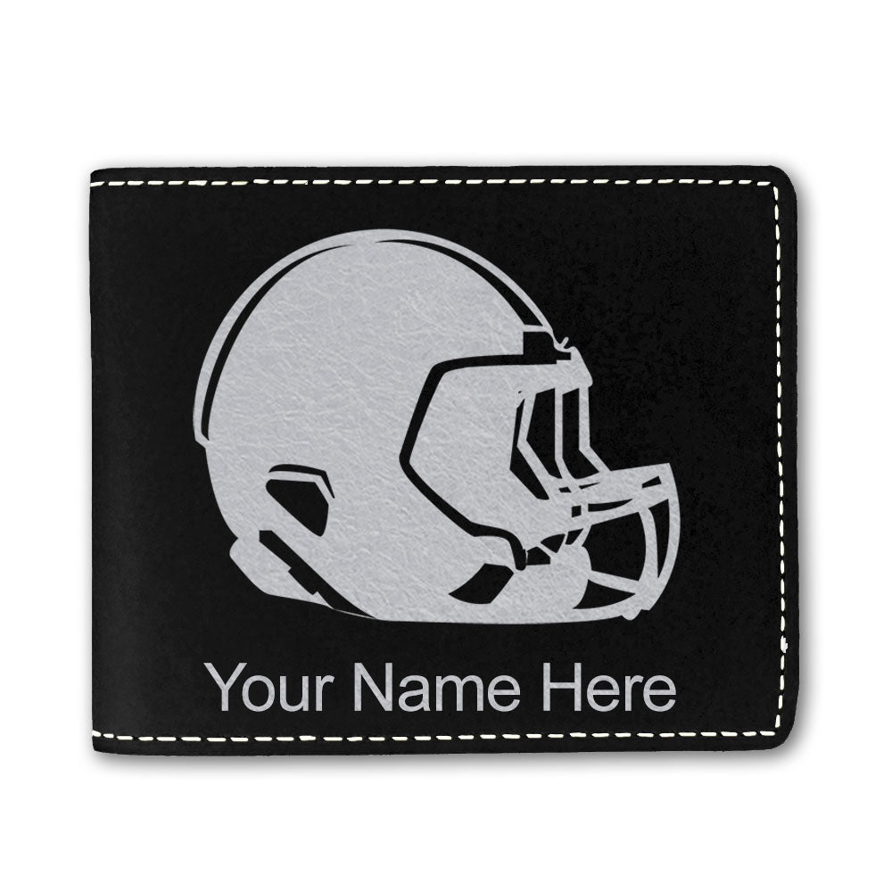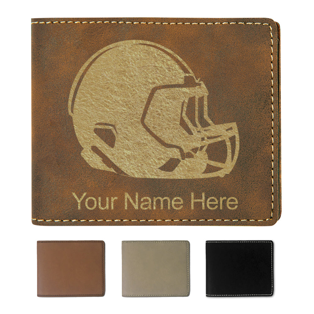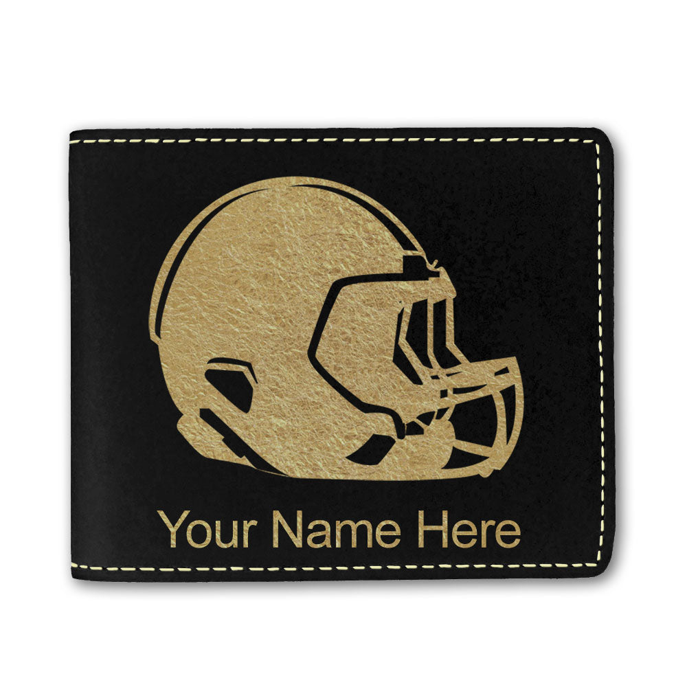 Faux Leather Bi-Fold Wallet, Football Helmet, Personalized Engraving Included