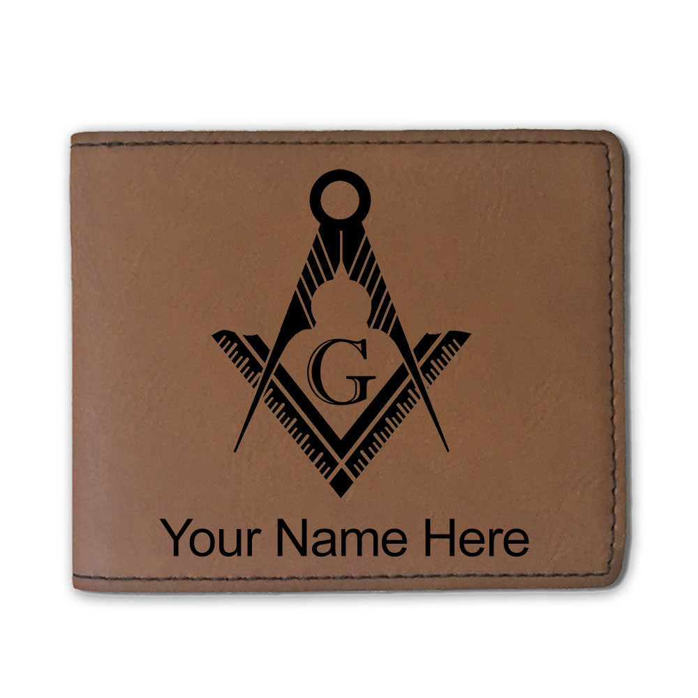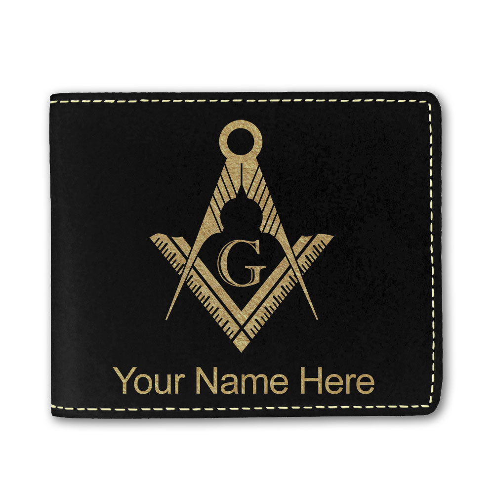 Faux Leather Bi-Fold Wallet, Freemason Symbol, Personalized Engraving Included