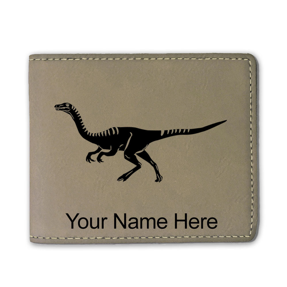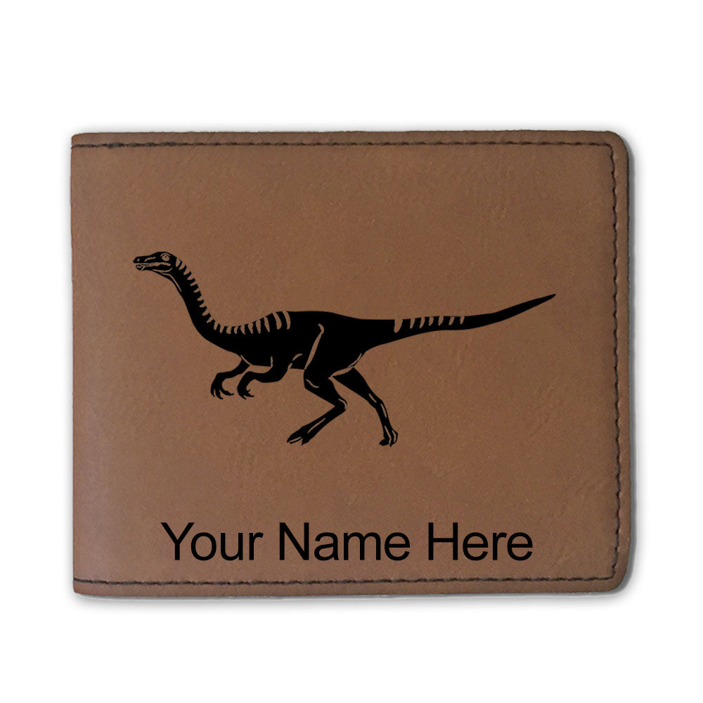 Faux Leather Bi-Fold Wallet, Gallimimus Dinosaur, Personalized Engraving Included