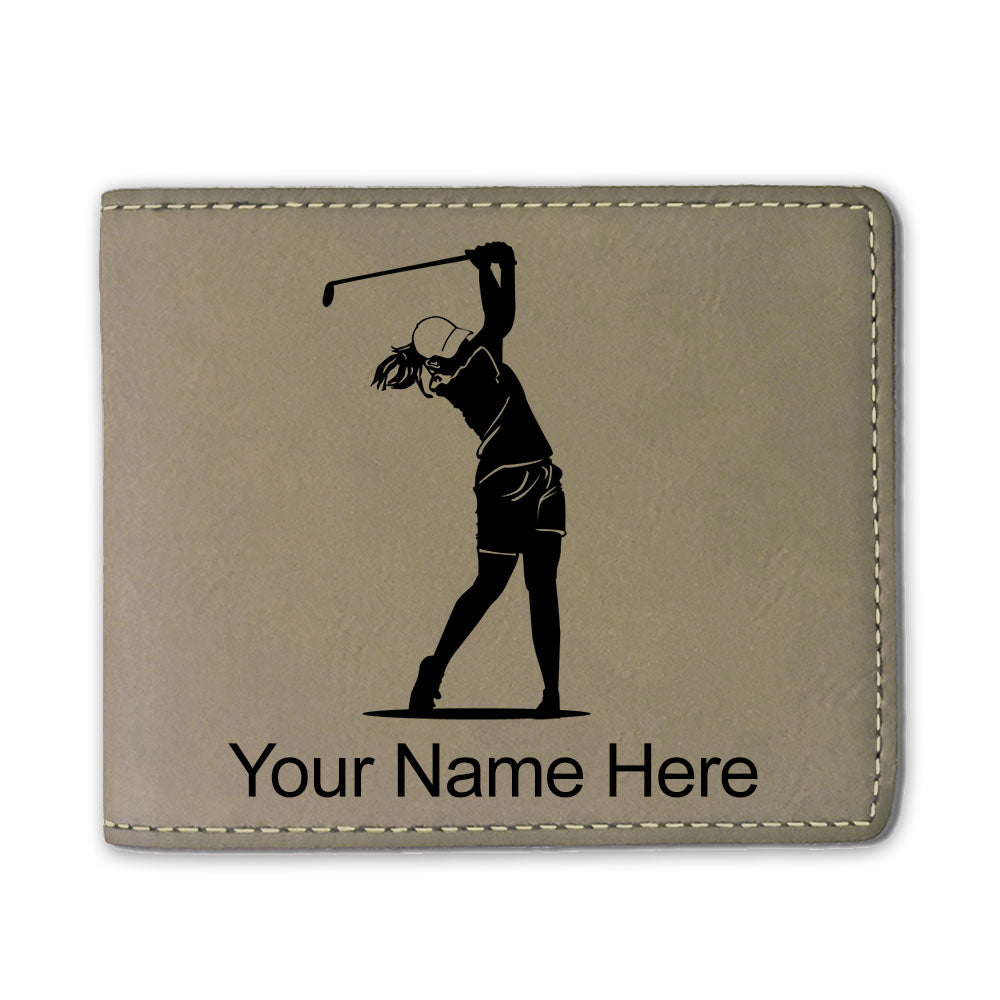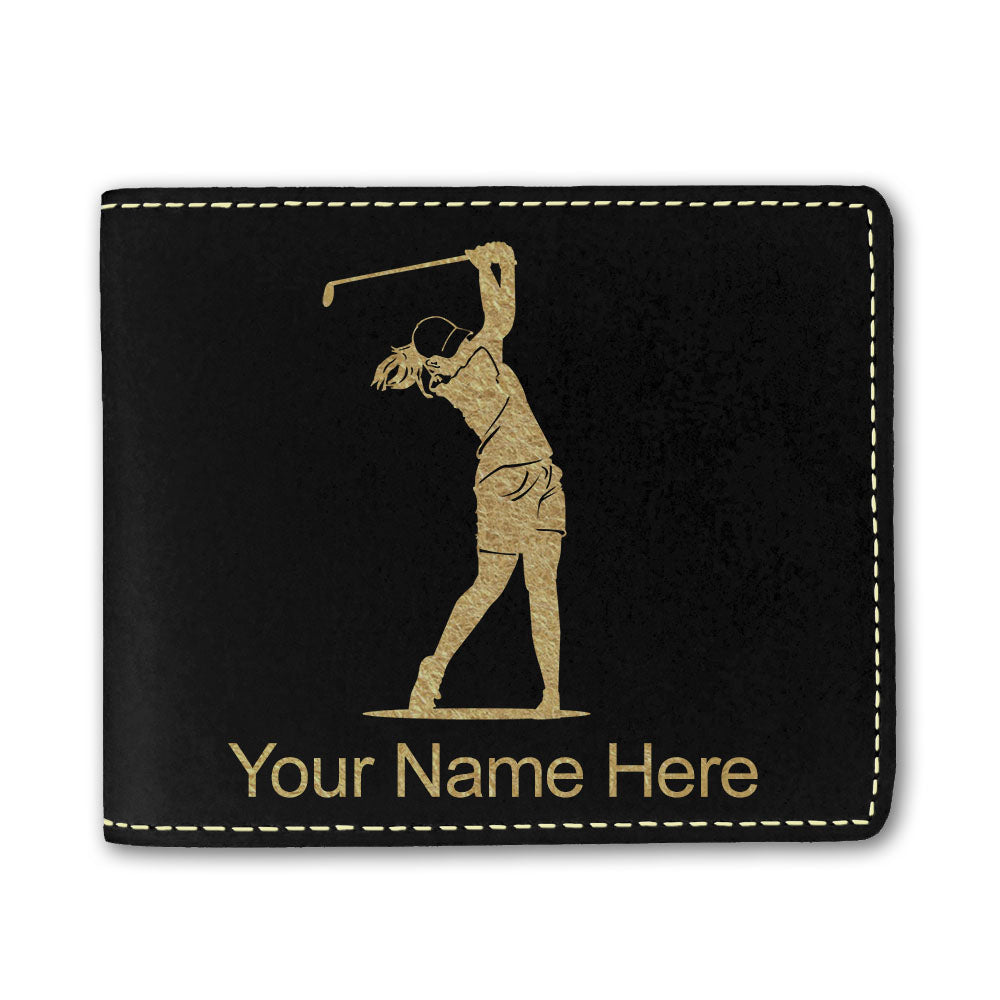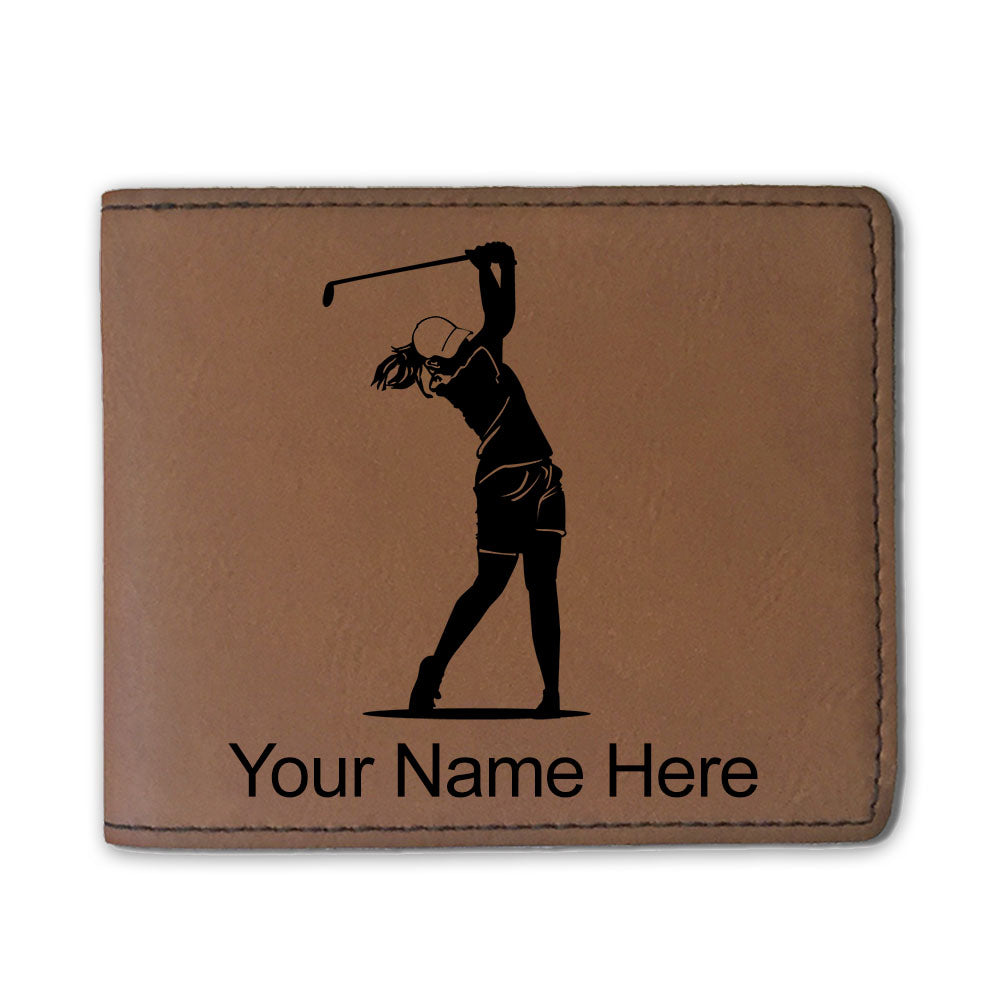Faux Leather Bi-Fold Wallet, Golfer Woman, Personalized Engraving Included