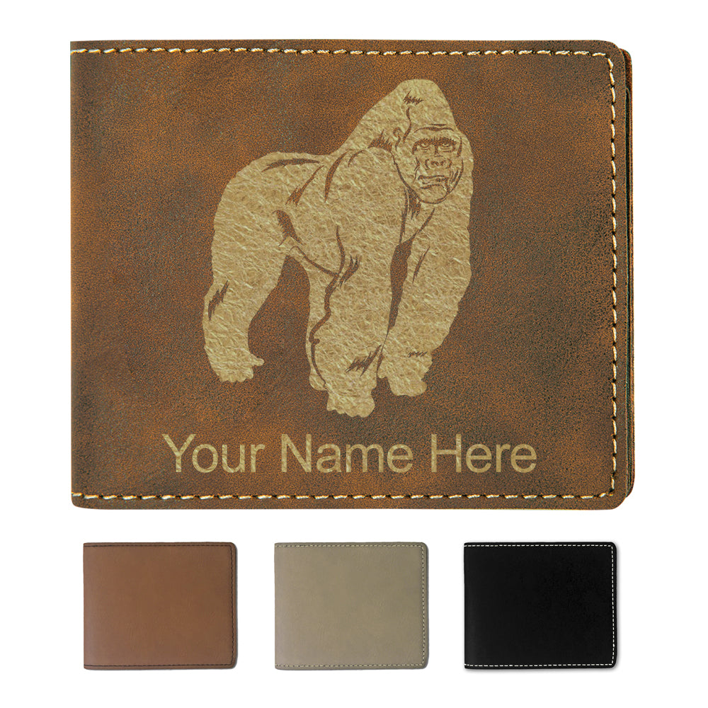 Faux Leather Bi-Fold Wallet, Gorilla, Personalized Engraving Included